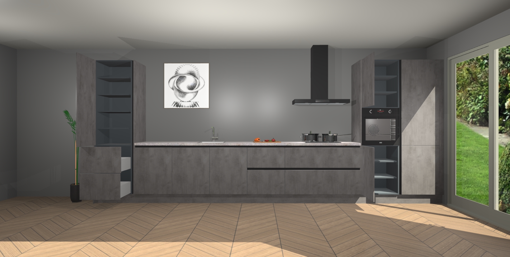 De Beton Antraciet greeploze keuken Barentsburg is de perfecte combinatie van stijl en functionaliteit. Het strakke design geeft uw keuken een moderne look die jarenlang meegaat. Bovendien zorgen onze deuren met softclose voor extra gebruiksgemak en gemoedsrust.