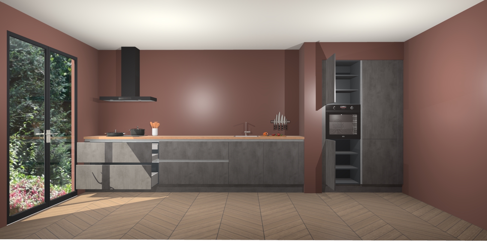 Met de Beton Antraciet greeploze keuken Calgary Maakt u van uw keuken het pronkstuk van uw huis. Stijlvol en toch praktisch, de nieuwste look voor wie meer waarde en charme aan zijn huis wil toevoegen. Met prachtige handgrepen die zich lenen voor een klassieke stijlbron, zal u niet teleurgesteld zijn in het resultaat. De soft-close deurscharnieren geven een gevoel van luxe omdat ze zachtjes bewegen zonder storende of krakende geluiden te veroorzaken.