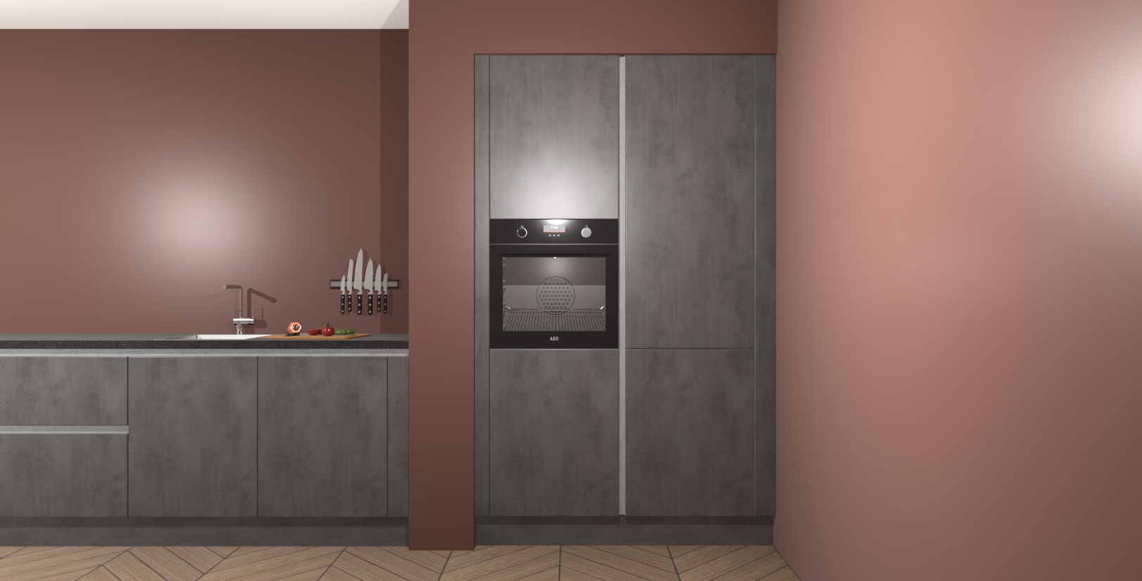 Met de Beton Antraciet greeploze keuken Calgary Maakt u van uw keuken het pronkstuk van uw huis. Stijlvol en toch praktisch, de nieuwste look voor wie meer waarde en charme aan zijn huis wil toevoegen. Met prachtige handgrepen die zich lenen voor een klassieke stijlbron, zal u niet teleurgesteld zijn in het resultaat. De soft-close deurscharnieren geven een gevoel van luxe omdat ze zachtjes bewegen zonder storende of krakende geluiden te veroorzaken.