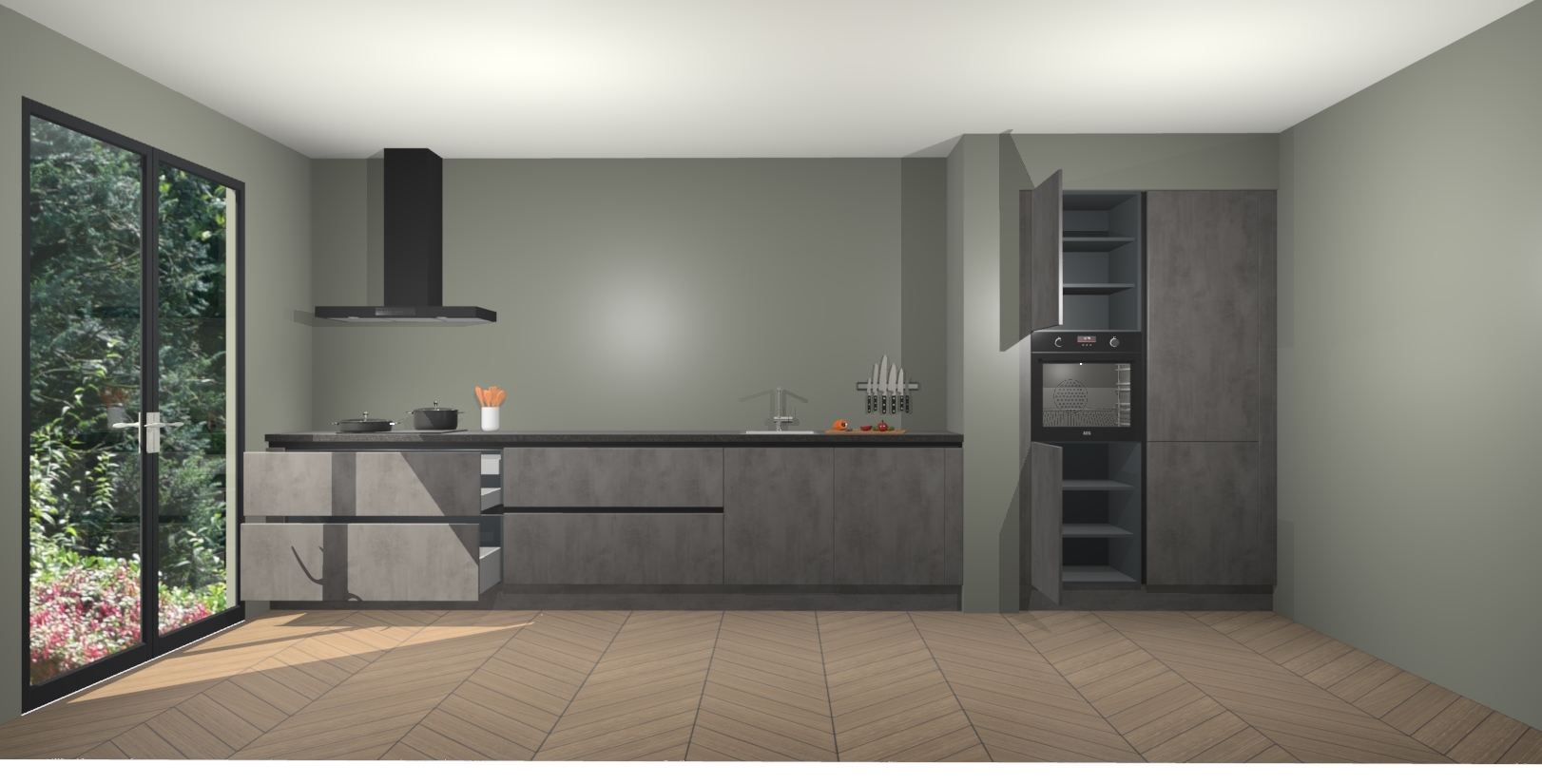 Maak kennis met de Beton Antraciet greeploze keuken Calgary - de perfecte aanvulling voor uw moderne keuken! Ervaar tijdloos design, elegantie en een chique uitstraling met onze handgrepen, soft-close deuren en veel opbergruimte. Dit alles wordt aangeboden tegen een vaste lage prijs voor ongeëvenaarde Duitse keukenkwaliteit!