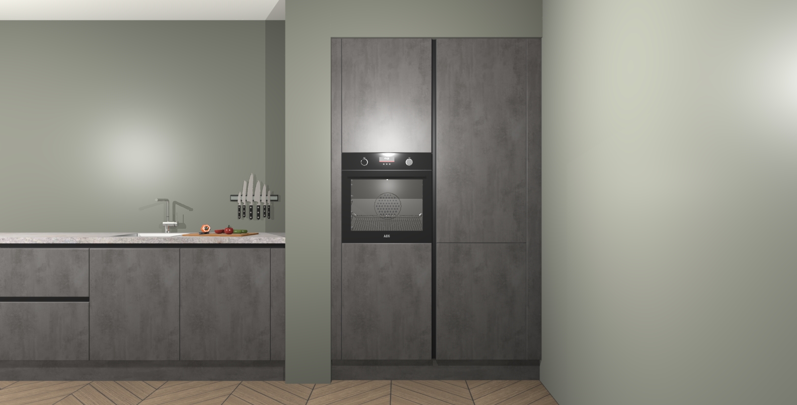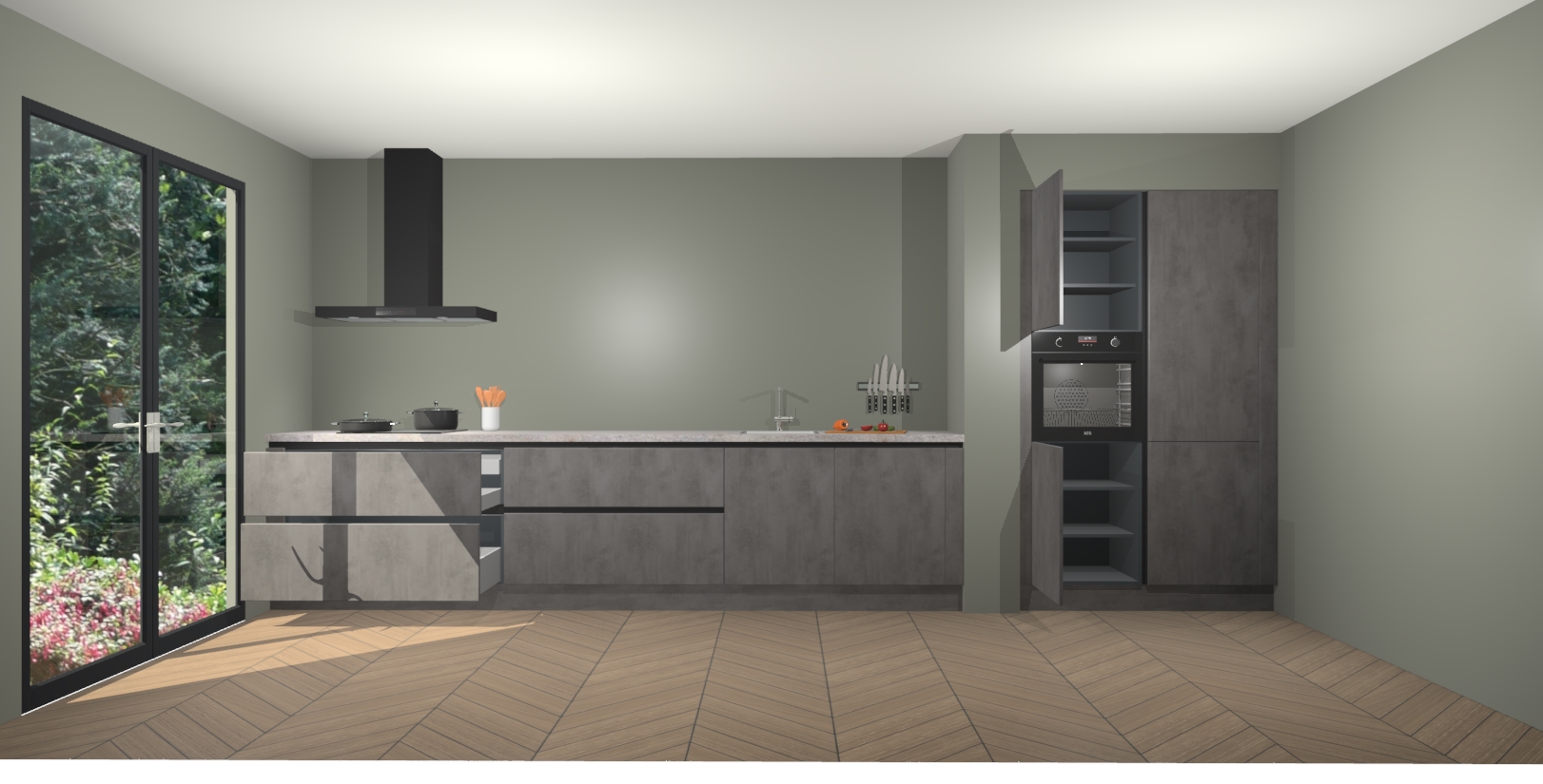 Met de Beton Antraciet greeploze keuken Calgary Maakt u van uw keuken het pronkstuk van uw huis. Stijlvol en toch praktisch, de nieuwste look voor wie meer waarde en charme aan zijn huis wil toevoegen. Met prachtige handgrepen die zich lenen voor een klassieke stijlbron, zal u niet teleurgesteld zijn in het resultaat. De soft-close deurscharnieren geven een gevoel van luxe omdat ze zachtjes bewegen zonder storende of krakende geluiden te veroorzaken.
