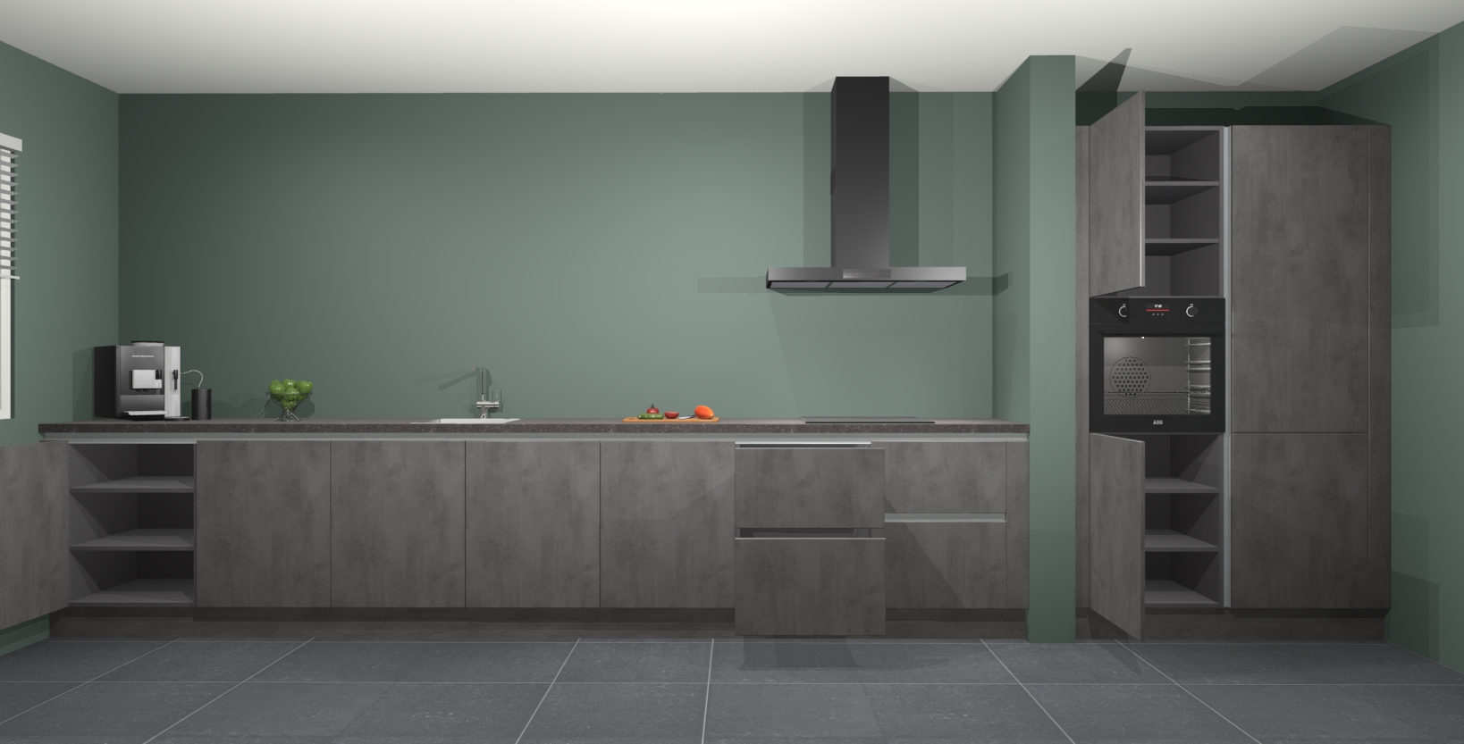 Maak kennis met de Beton antraciet keuken Elzas - de perfecte aanvulling voor uw moderne keuken! Ervaar tijdloos design, elegantie en een chique uitstraling met onze handgrepen, soft-close deuren en veel opbergruimte. Dit alles wordt aangeboden tegen een vaste lage prijs voor ongeëvenaarde Duitse keukenkwaliteit!