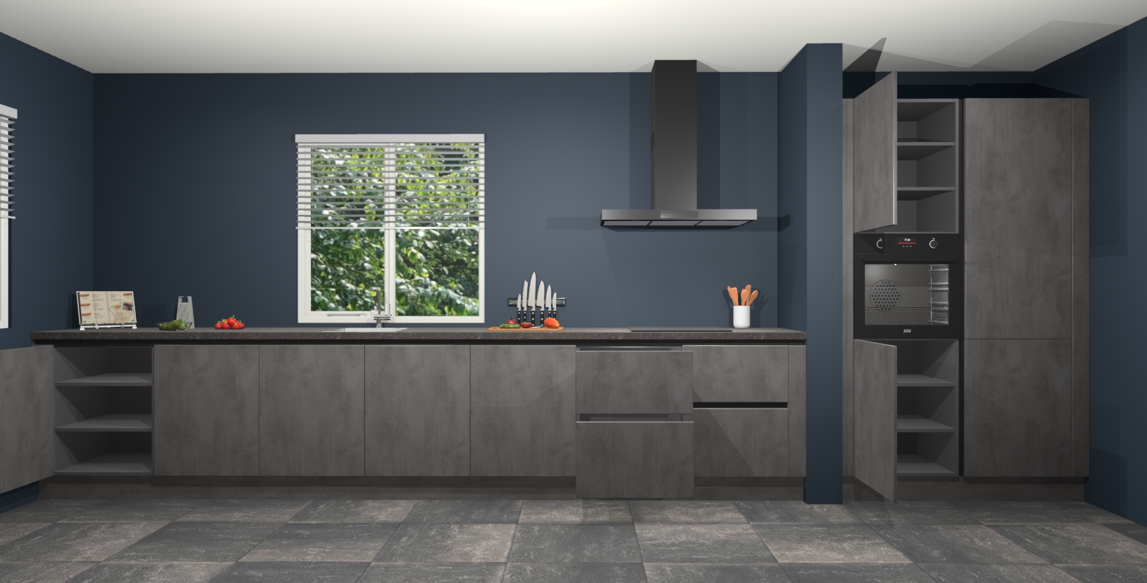 Maak kennis met de Beton antraciet keuken Elzas - de perfecte aanvulling voor uw moderne keuken! Ervaar tijdloos design, elegantie en een chique uitstraling met onze handgrepen, soft-close deuren en veel opbergruimte. Dit alles wordt aangeboden tegen een vaste lage prijs voor ongeëvenaarde Duitse keukenkwaliteit!