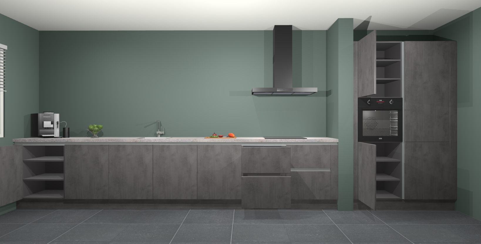 Maak kennis met de Beton antraciet keuken Elzas - de perfecte aanvulling voor uw moderne keuken! Ervaar tijdloos design, elegantie en een chique uitstraling met onze handgrepen, soft-close deuren en veel opbergruimte. Dit alles wordt aangeboden tegen een vaste lage prijs voor ongeëvenaarde Duitse keukenkwaliteit!