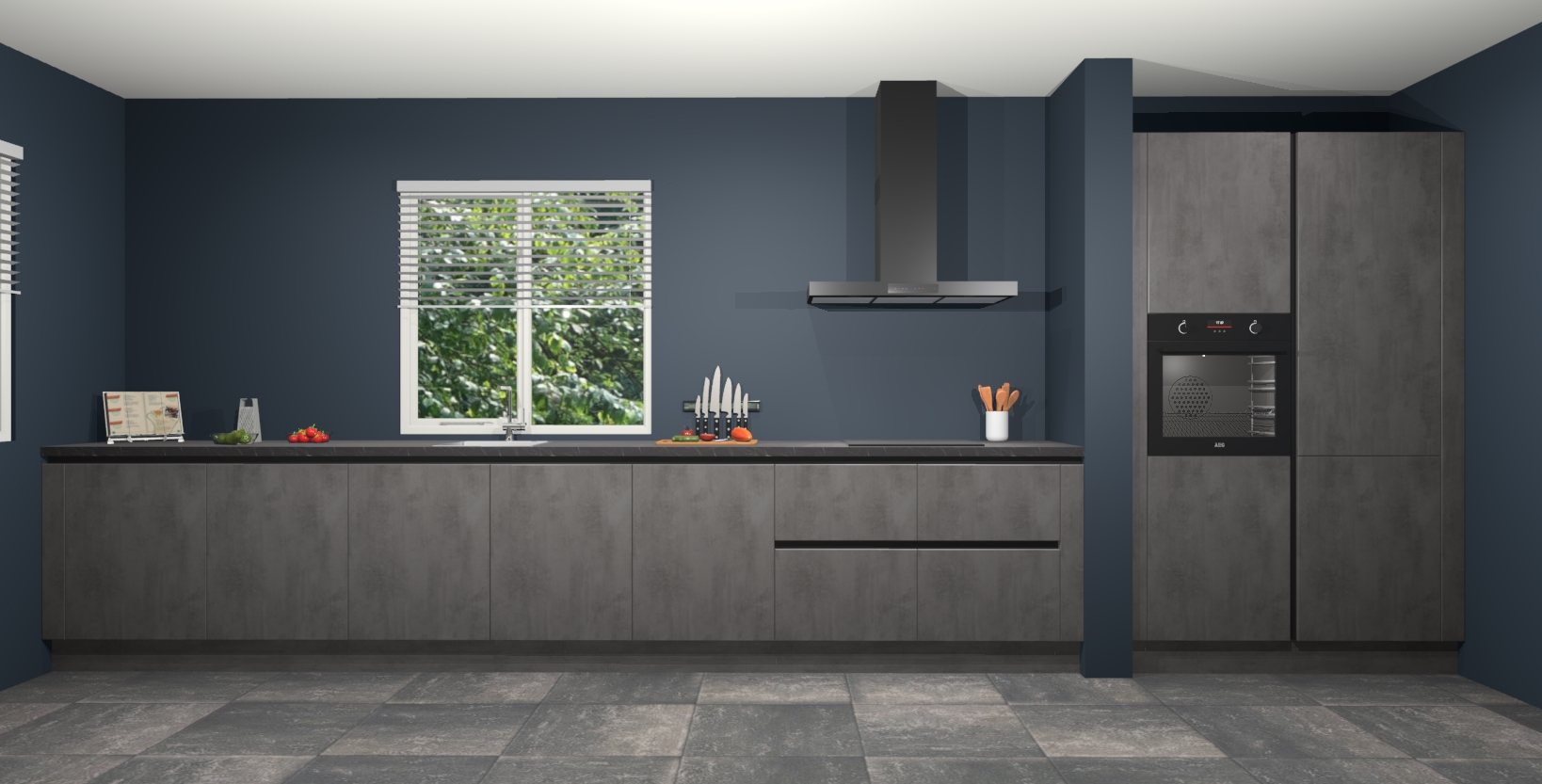 Maak kennis met de Beton antraciet keuken Elzas - de perfecte aanvulling voor uw moderne keuken! Ervaar tijdloos design, elegantie en een chique uitstraling met onze handgrepen, soft-close deuren en veel opbergruimte. Dit alles wordt aangeboden tegen een vaste lage prijs voor ongeëvenaarde Duitse keukenkwaliteit!