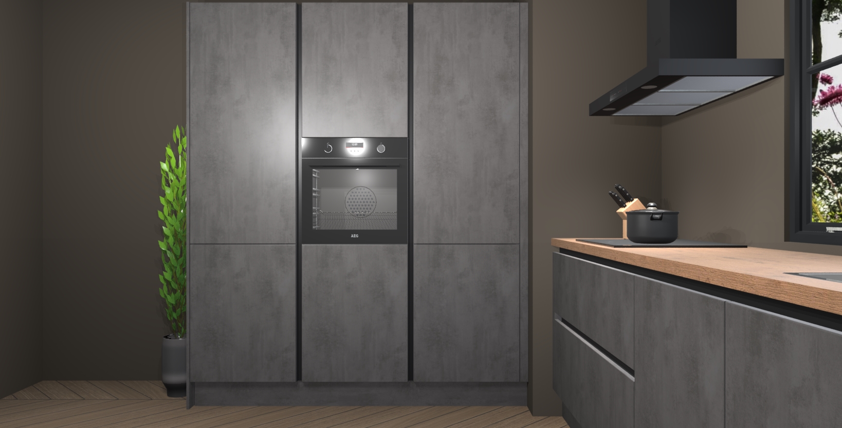 De Beton antraciet keuken Marseille, een mooie en verbluffende toevoeging aan uw keuken, is een kunstwerk met zijn luxe design en unieke combinatie van Beton antraciet met een houten blad. Geniet van eersteklas vakmanschap dat zorgt voor jarenlange betrouwbaarheid in een strak Europees hedendaags ontwerp.