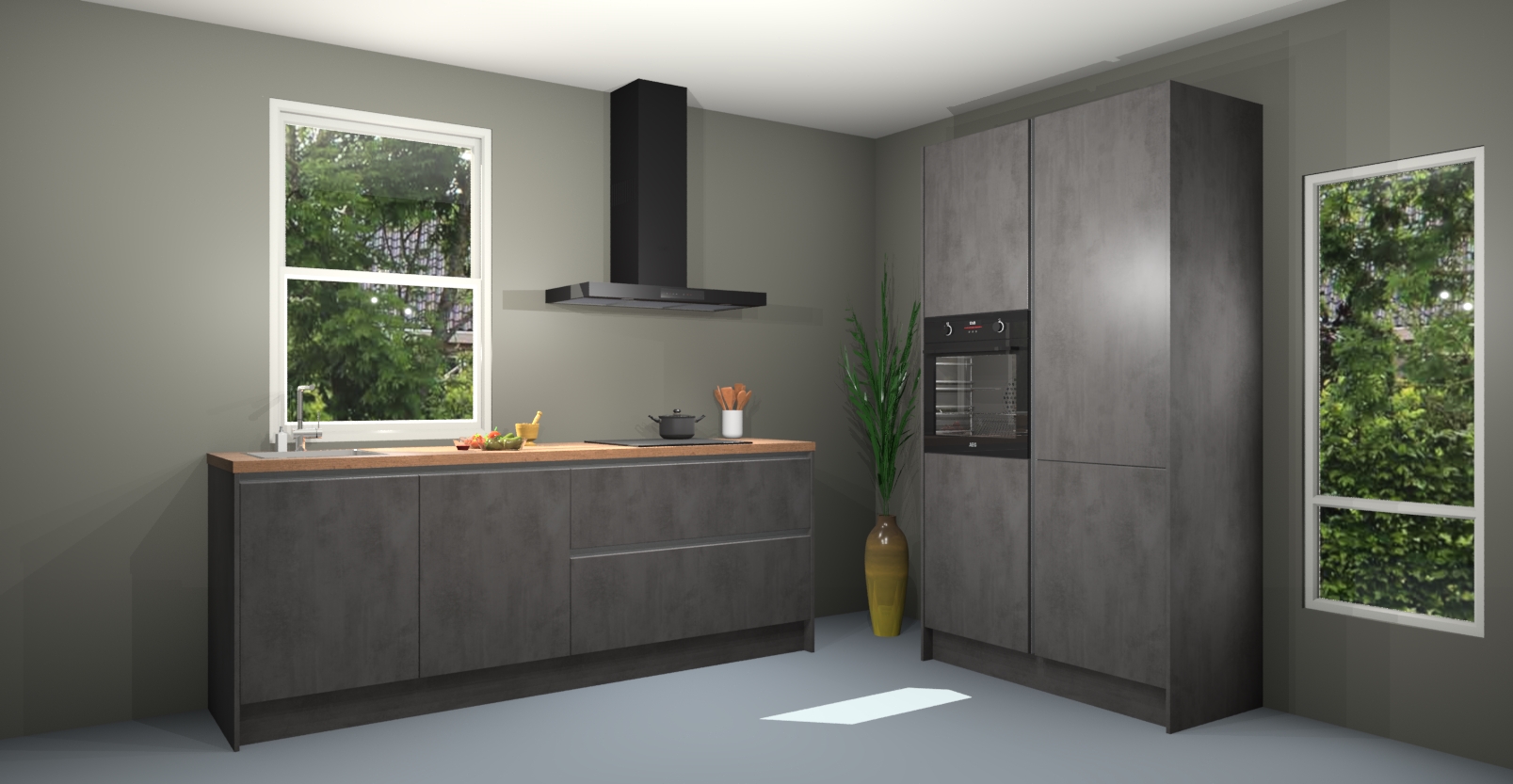 Ervaar het ultieme gevoel van warmte en gezelligheid in uw huis met de luxe Beton antraciet greeploze keuken Monaco! Deze ongelooflijk sfeervolle houtlook straalt heerlijke warmte uit en tovert elke keuken om tot een gezellig familiecentrum. Breng uw dromen tot leven met deze unieke keuken, ontworpen voor moeiteloze luxe en functionaliteit.