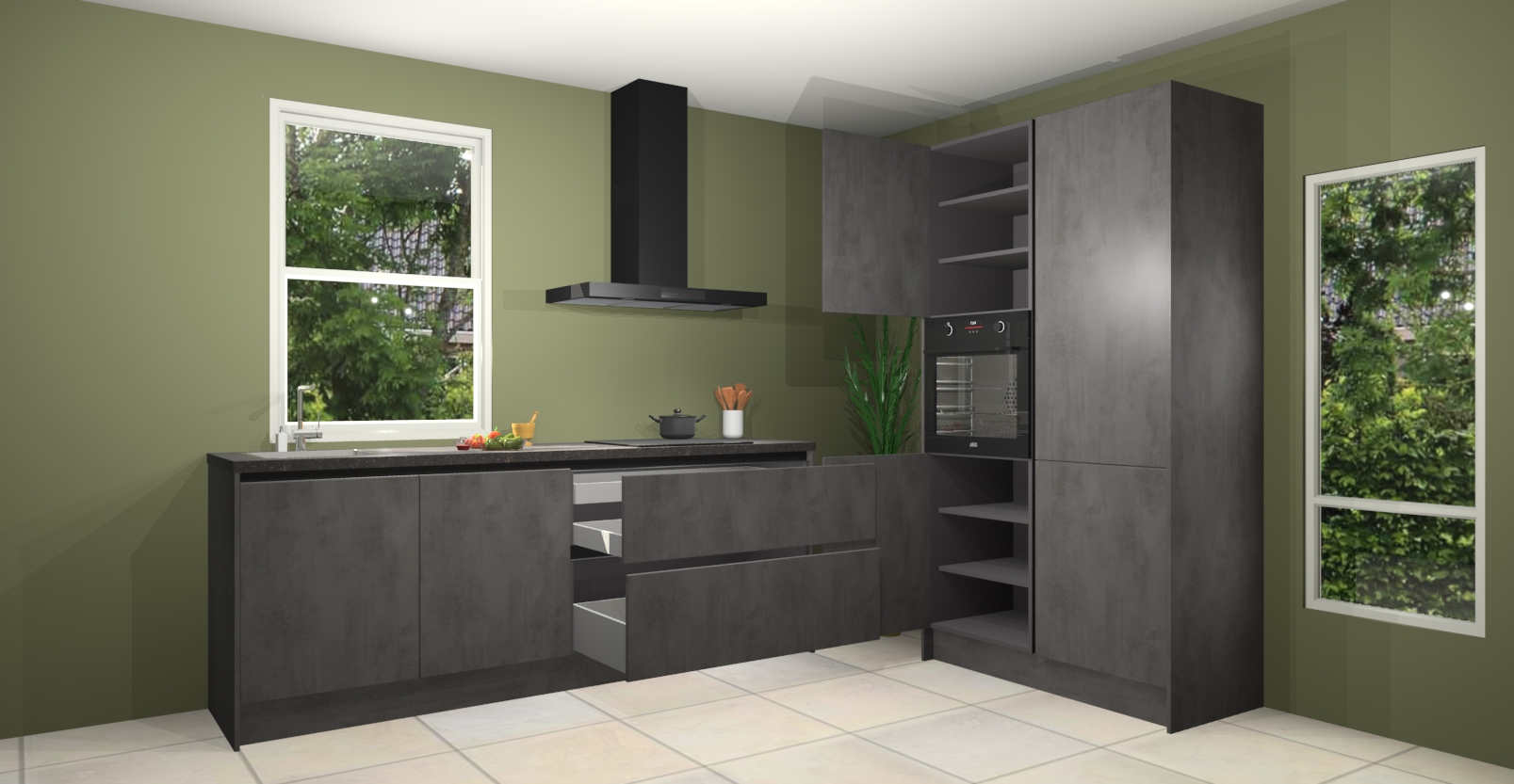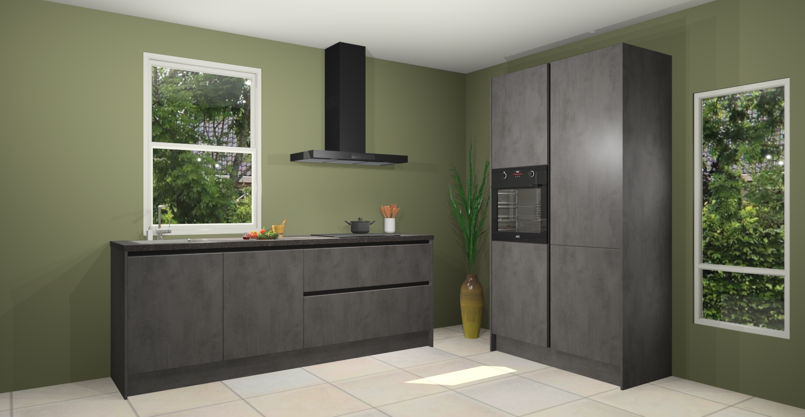 Ervaar het ultieme gevoel van warmte en gezelligheid in uw huis met de luxe Beton antraciet greeploze keuken Monaco! Deze ongelooflijk sfeervolle houtlook straalt heerlijke warmte uit en tovert elke keuken om tot een gezellig familiecentrum. Breng uw dromen tot leven met deze unieke keuken, ontworpen voor moeiteloze luxe en functionaliteit.