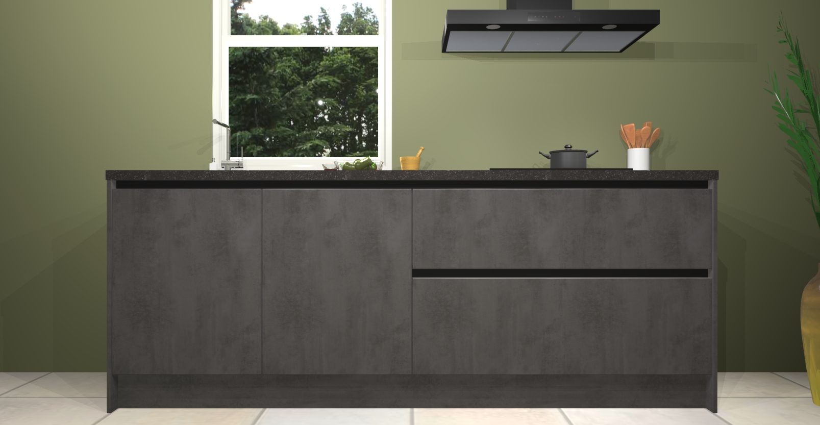 De Beton antraciet greeploze keuken Monaco heeft voldoende opbergruimte om uw keukenbenodigdheden georganiseerd en netjes te houden. Geniet van het gemak van de soft-close deuren, die deze stijlvolle look perfect afmaken. Maar dat is nog niet alles. Met de Beton antraciet greeploze keuken Monaco krijgt u maar liefst 5 ingebouwde apparaten: een oven, inductiekookplaat, afzuigkap, vaatwasser en koelkast. Deze kunnen gemakkelijk worden geüpgraded naar AEG als ze besteld zijn.