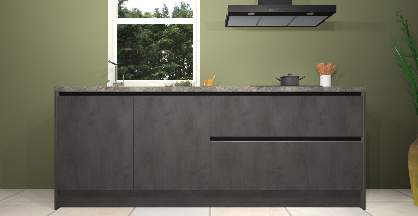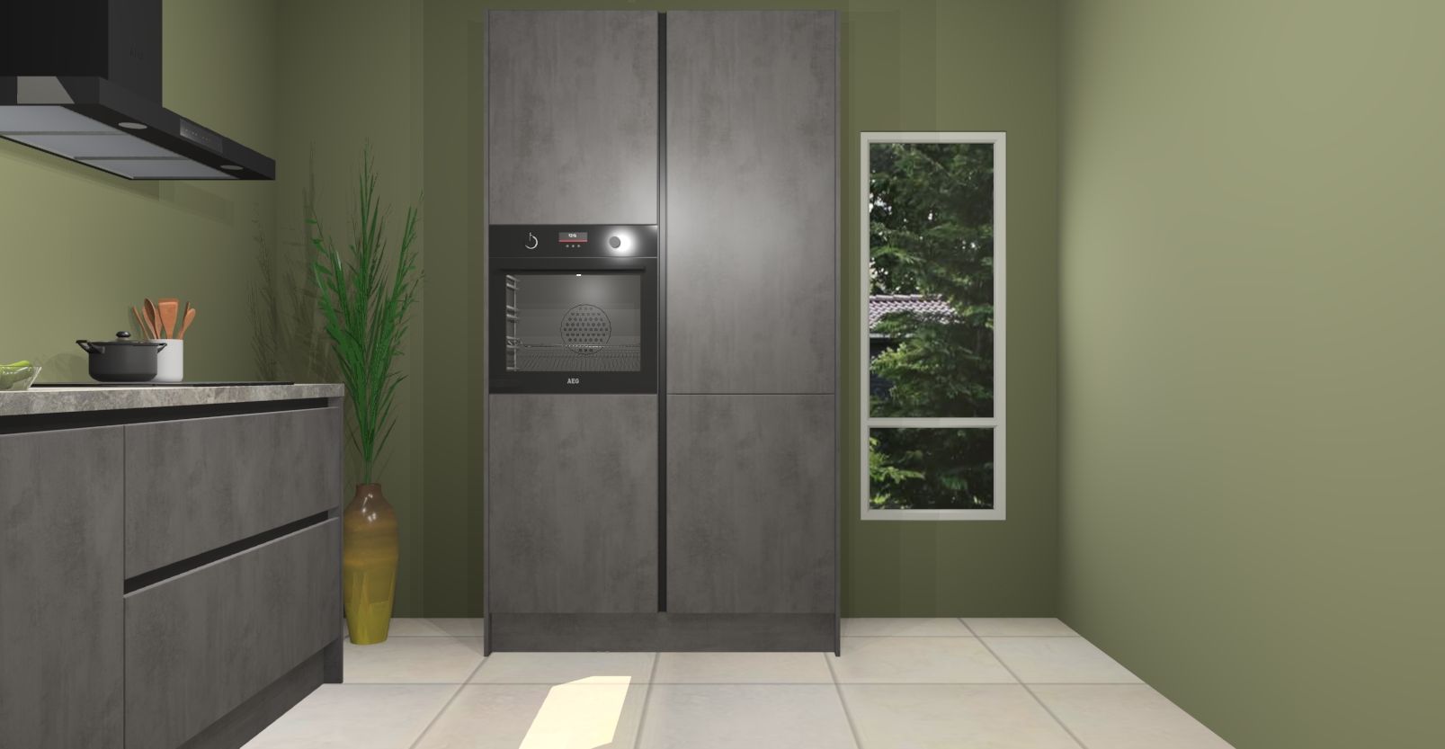 De Beton antraciet greeploze keuken Monaco heeft voldoende opbergruimte om uw keukenbenodigdheden georganiseerd en netjes te houden. Geniet van het gemak van de soft-close deuren, die deze stijlvolle look perfect afmaken. Maar dat is nog niet alles. Met de Beton antraciet greeploze keuken Monaco krijgt u maar liefst 5 ingebouwde apparaten: een oven, inductiekookplaat, afzuigkap, vaatwasser en koelkast. Deze kunnen gemakkelijk worden geüpgraded naar AEG als ze besteld zijn.