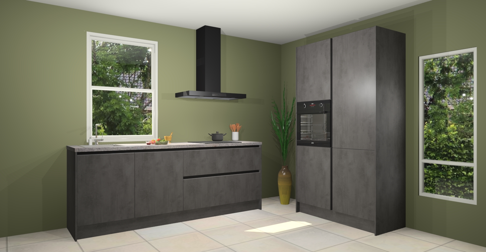 Ervaar het ultieme gevoel van warmte en gezelligheid in uw huis met de luxe Beton antraciet greeploze keuken Monaco! Deze ongelooflijk sfeervolle houtlook straalt heerlijke warmte uit en tovert elke keuken om tot een gezellig familiecentrum. Breng uw dromen tot leven met deze unieke keuken, ontworpen voor moeiteloze luxe en functionaliteit.