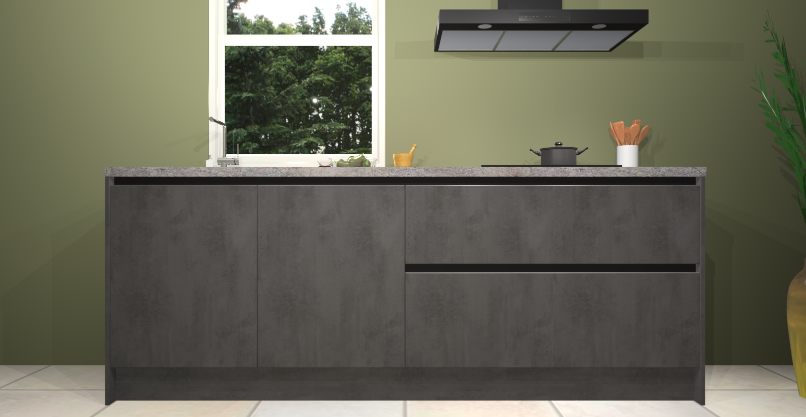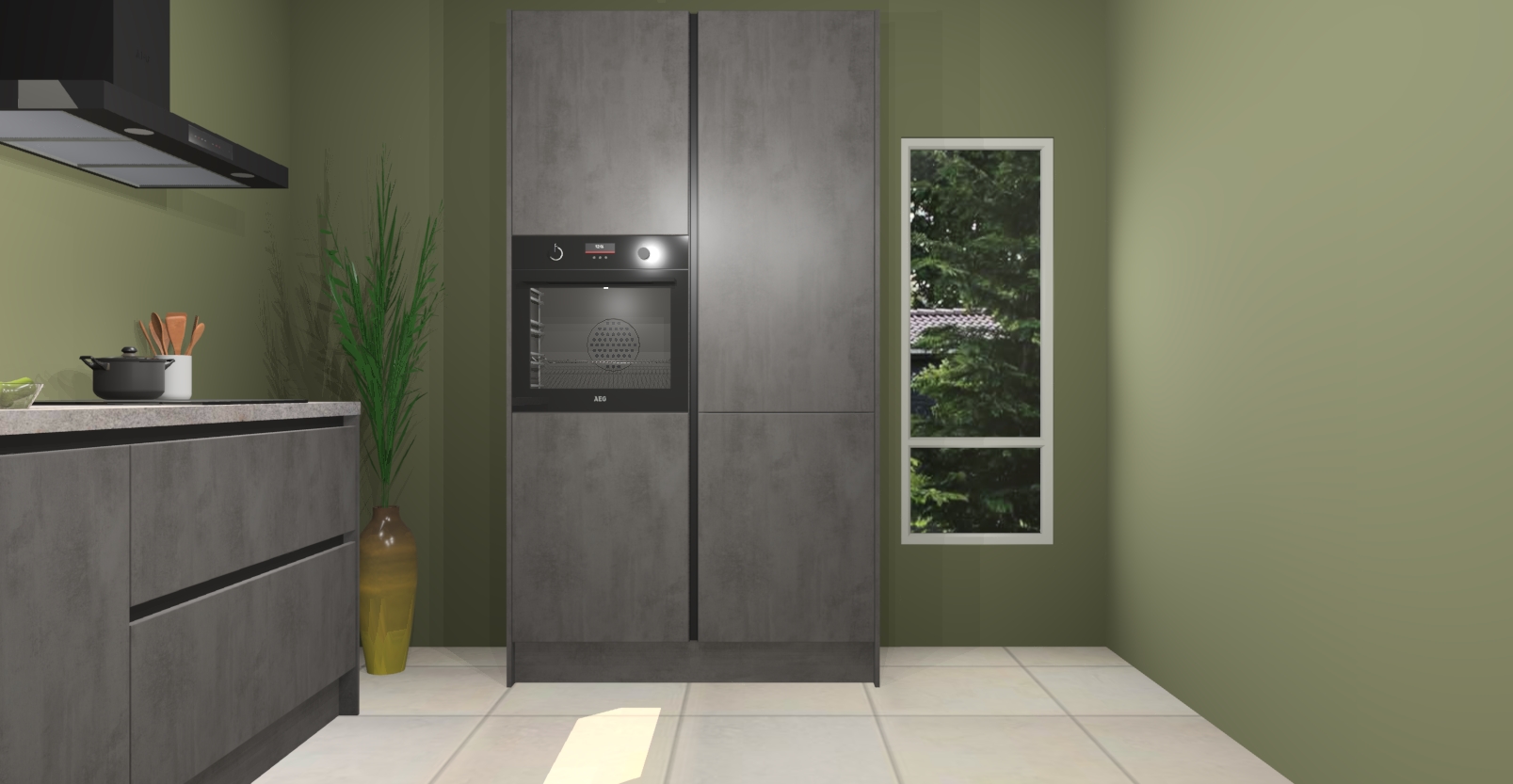 De Beton antraciet greeploze keuken Monaco heeft voldoende opbergruimte om uw keukenbenodigdheden georganiseerd en netjes te houden. Geniet van het gemak van de soft-close deuren, die deze stijlvolle look perfect afmaken. Maar dat is nog niet alles. Met de Beton antraciet greeploze keuken Monaco krijgt u maar liefst 5 ingebouwde apparaten: een oven, inductiekookplaat, afzuigkap, vaatwasser en koelkast. Deze kunnen gemakkelijk worden geüpgraded naar AEG als ze besteld zijn.