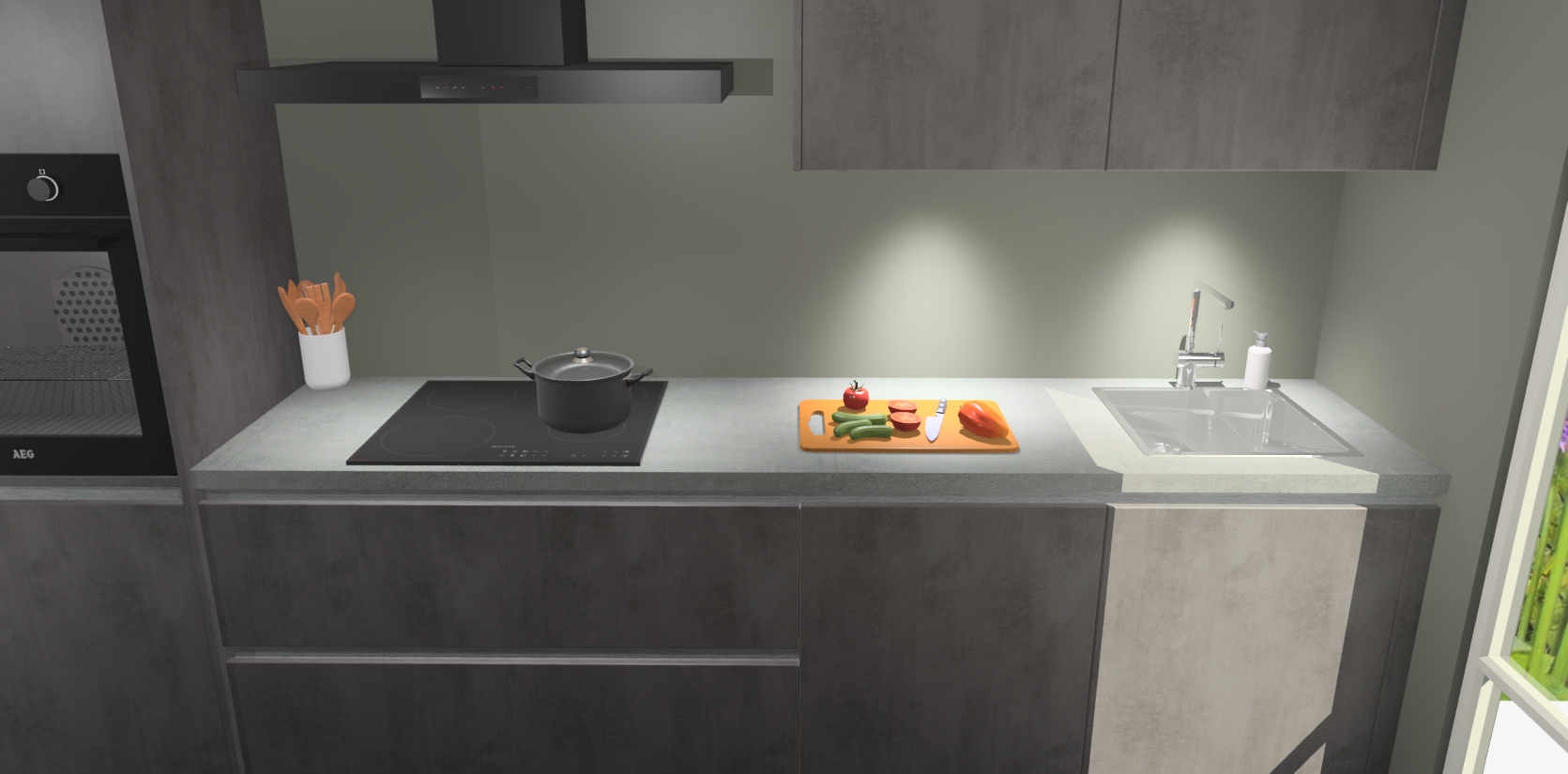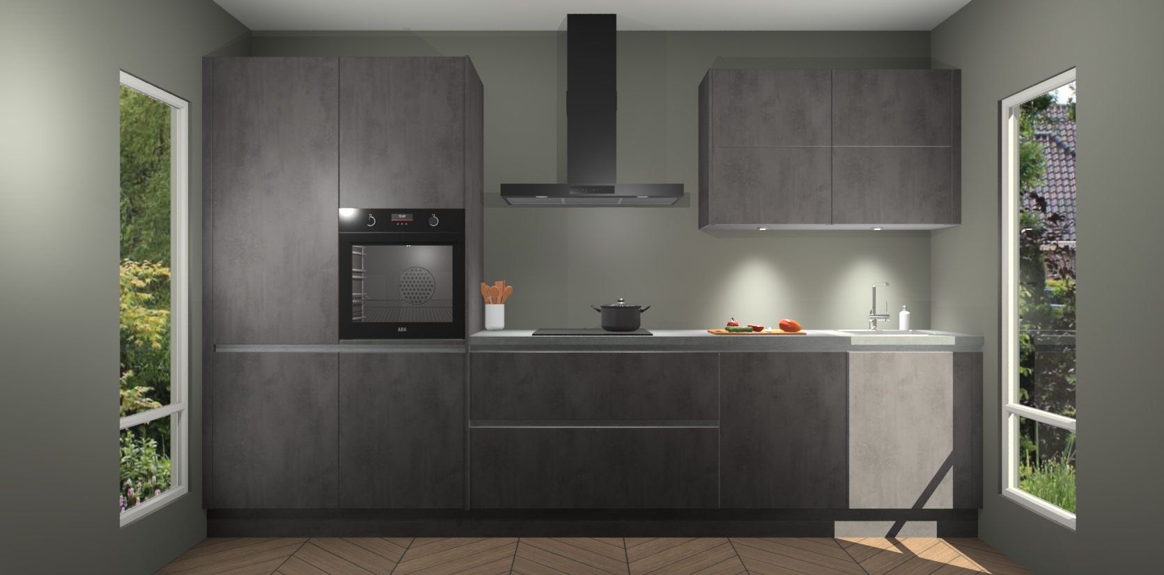 Maak kennis met de nieuwe Beton Antraciet greeploze Keuken Parijs - de perfecte designcombinatie van gemak, moderne elegantie en ultramodern design. Met een gemakkelijk te reinigen Beton Antraciet afwerking, zal de slankheid van deze keuken zeker een vleugje luxe toevoegen aan elke ruimte die hij inneemt.