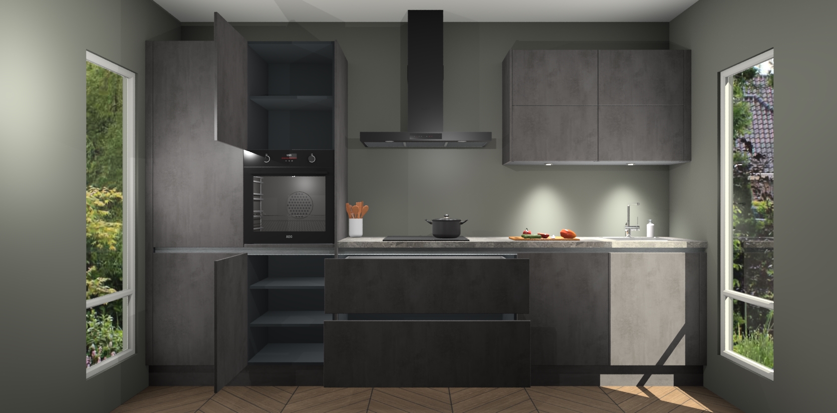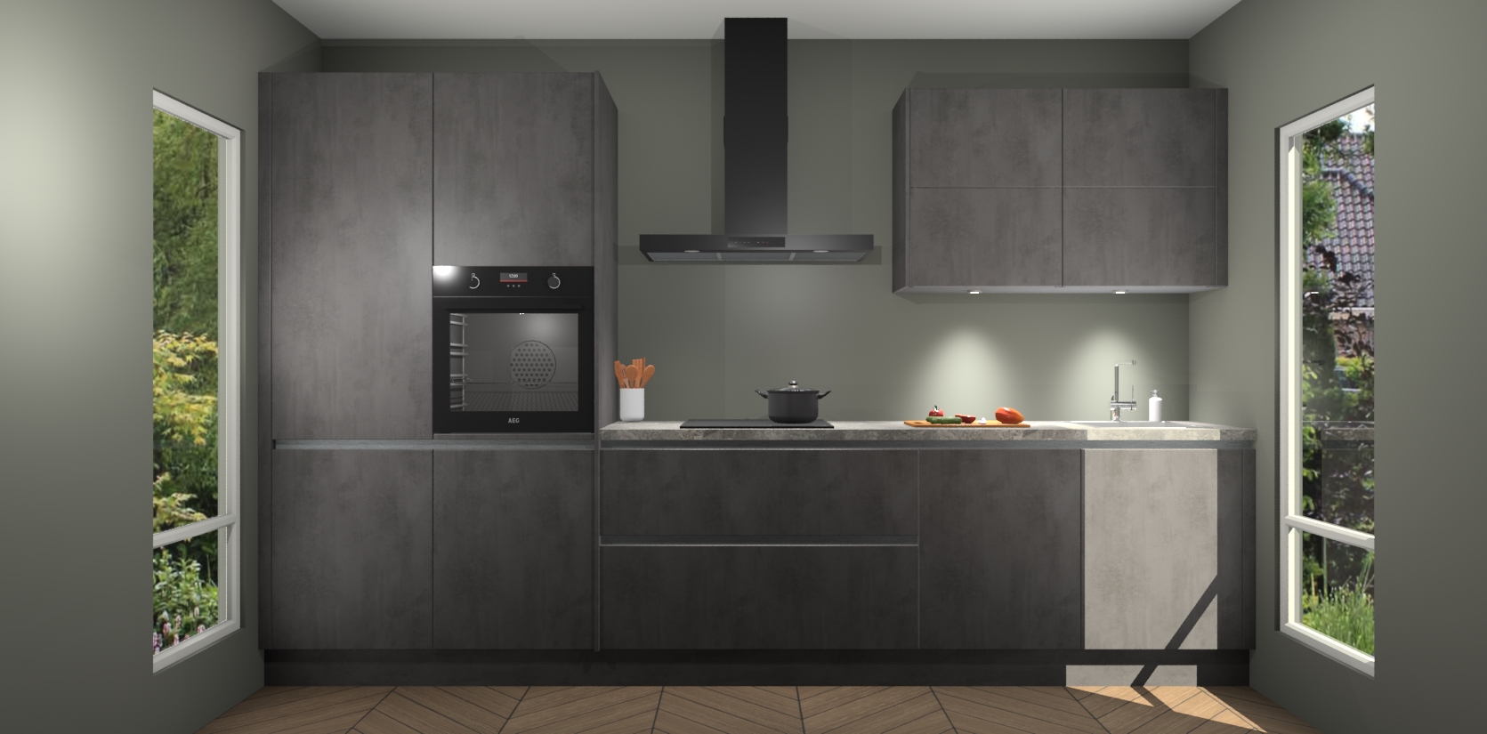 Maak kennis met de nieuwe Beton Antraciet greeploze Keuken Parijs - de perfecte designcombinatie van gemak, moderne elegantie en ultramodern design. Met een gemakkelijk te reinigen Beton Antraciet afwerking, zal de slankheid van deze keuken zeker een vleugje luxe toevoegen aan elke ruimte die hij inneemt.