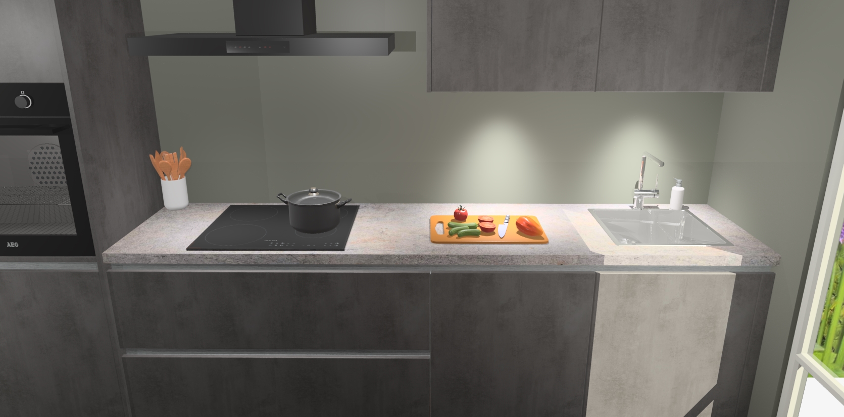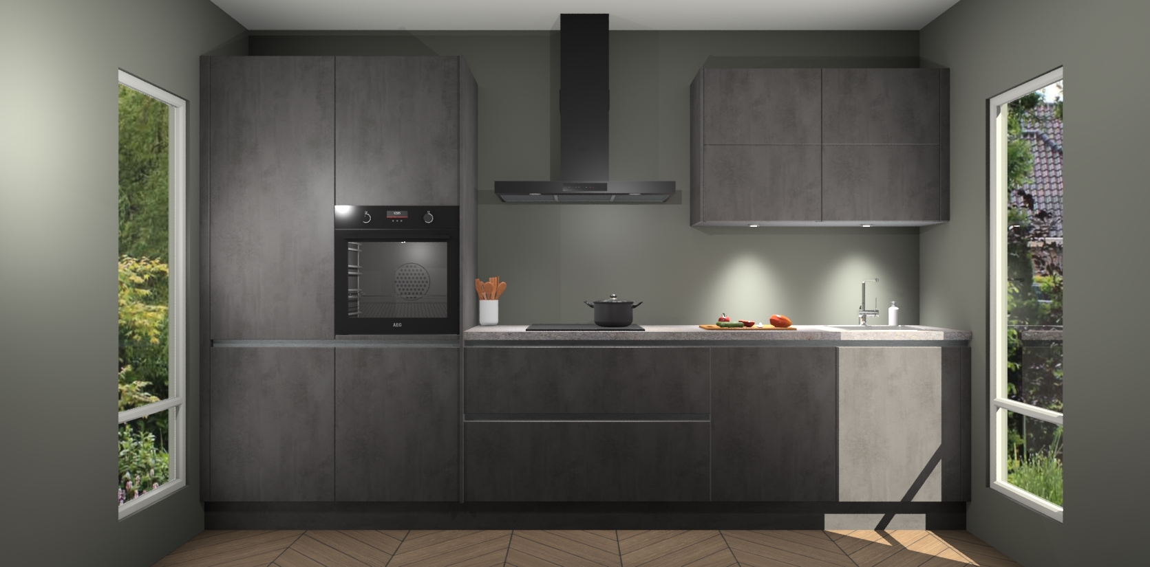 De glanzende afwerking van de deuren is gemaakt met behulp van geavanceerde coatingtechnologie, waardoor schoonmaken na het eten eenvoudig en efficiënt is. Bovendien zijn er geen handgrepen nodig, waardoor deze keuken zowel modern als verfijnd is. Of u nu op zoek bent naar een minimalistische toevoeging aan een hedendaags huis of naar iets stijlvollers en tijdlozers in een traditionele huiselijke omgeving, onze Beton Antraciet greeploze Keuken Parijs is een geweldige oplossing.