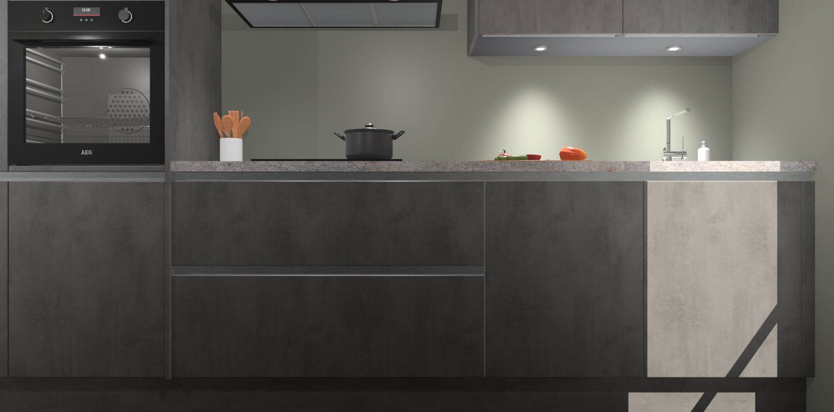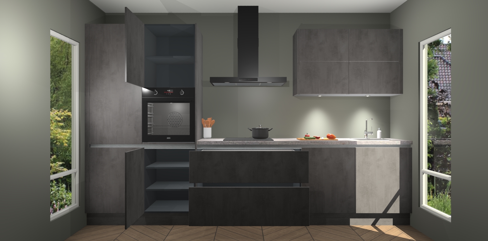 Maak kennis met de nieuwe Beton Antraciet greeploze Keuken Parijs - de perfecte designcombinatie van gemak, moderne elegantie en ultramodern design. Met een gemakkelijk te reinigen Beton Antraciet afwerking, zal de slankheid van deze keuken zeker een vleugje luxe toevoegen aan elke ruimte die hij inneemt.