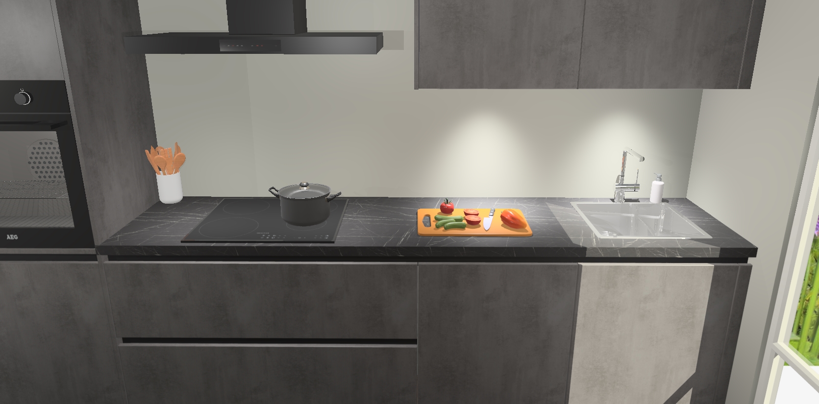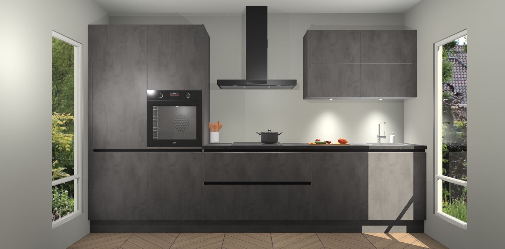 De glanzende afwerking van de deuren is gemaakt met behulp van geavanceerde coatingtechnologie, waardoor schoonmaken na het eten eenvoudig en efficiënt is. Bovendien zijn er geen handgrepen nodig, waardoor deze keuken zowel modern als verfijnd is. Of u nu op zoek bent naar een minimalistische toevoeging aan een hedendaags huis of naar iets stijlvollers en tijdlozers in een traditionele huiselijke omgeving, onze Beton Antraciet greeploze Keuken Parijs is een geweldige oplossing.
