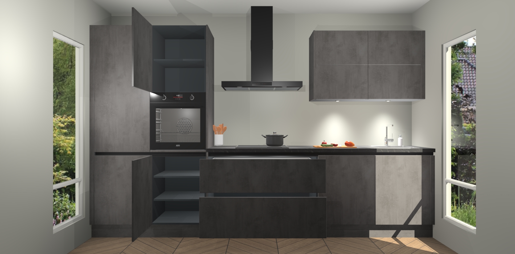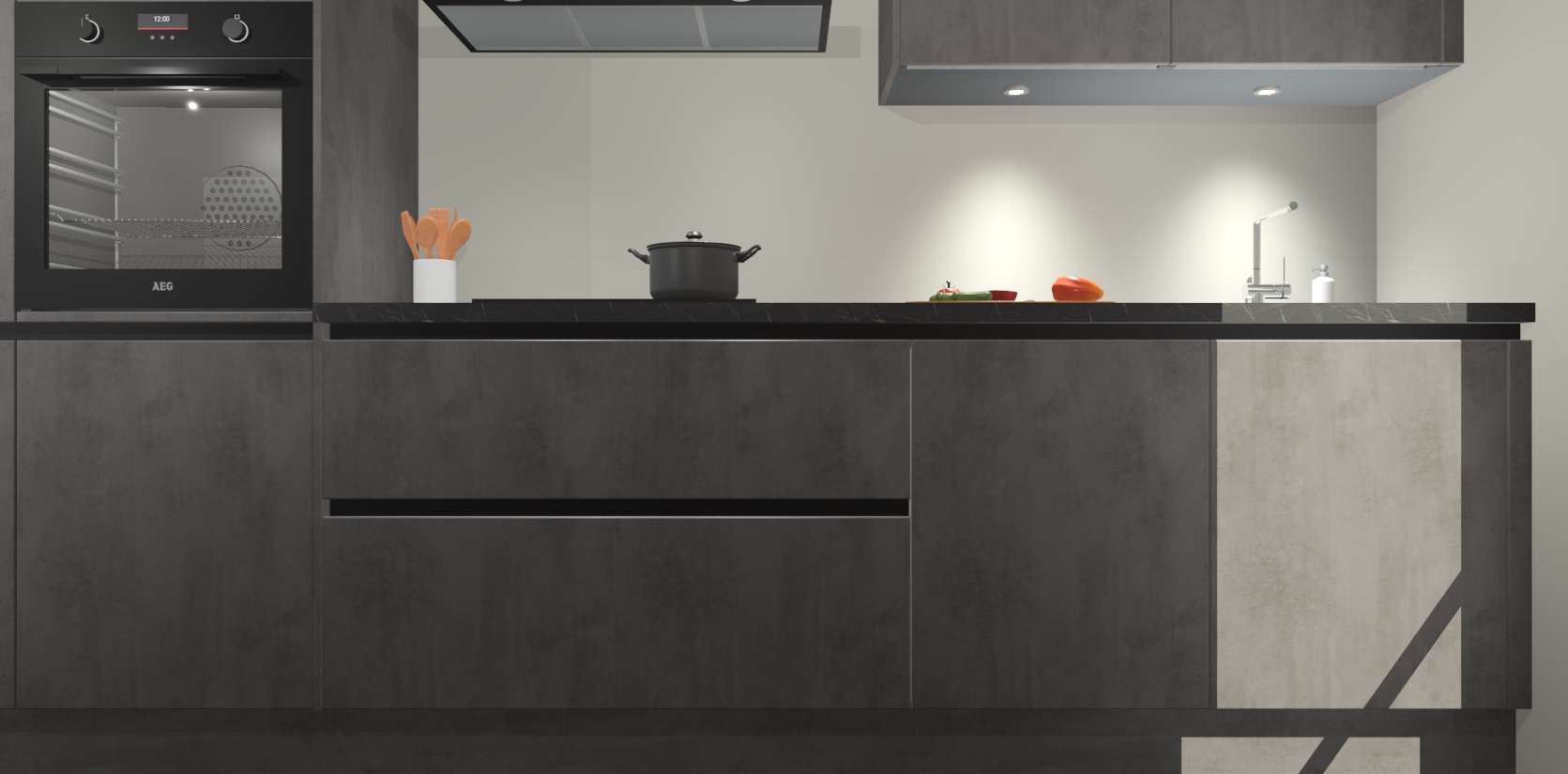 Maak kennis met de nieuwe Beton Antraciet greeploze Keuken Parijs - de perfecte designcombinatie van gemak, moderne elegantie en ultramodern design. Met een gemakkelijk te reinigen Beton Antraciet afwerking, zal de slankheid van deze keuken zeker een vleugje luxe toevoegen aan elke ruimte die hij inneemt.