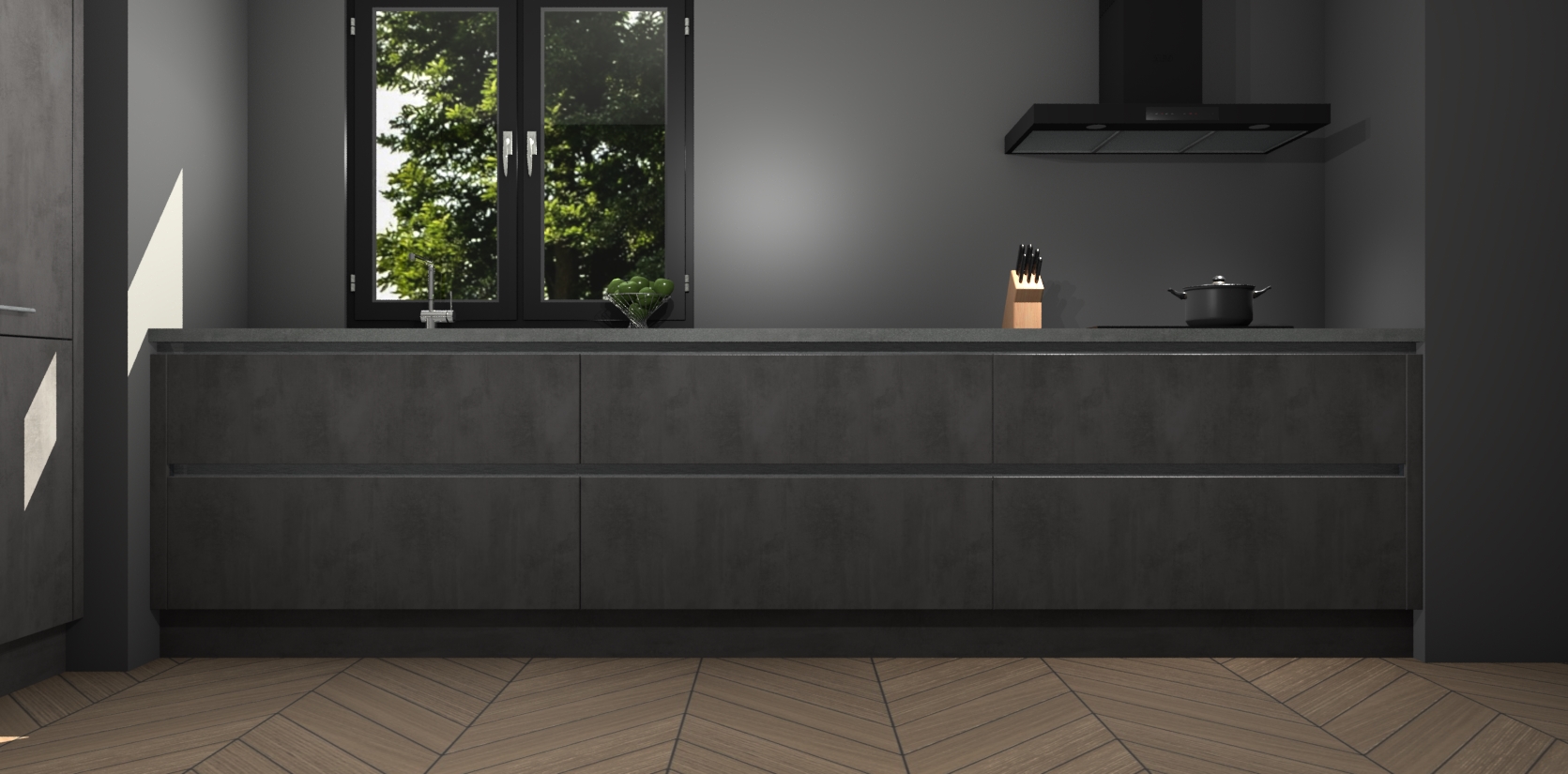 Maak van uw keuken een plek waar u trots op bent - trakteer uzelf vandaag nog op de kwaliteit en elegantie van de Beton Antraciet greeploze keuken Taipei !