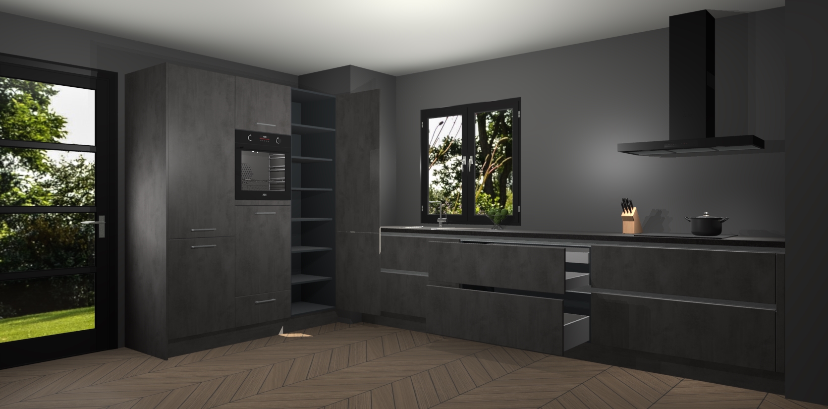 Maak van uw keuken een plek waar u trots op bent - trakteer uzelf vandaag nog op de kwaliteit en elegantie van de Beton Antraciet greeploze keuken Taipei !