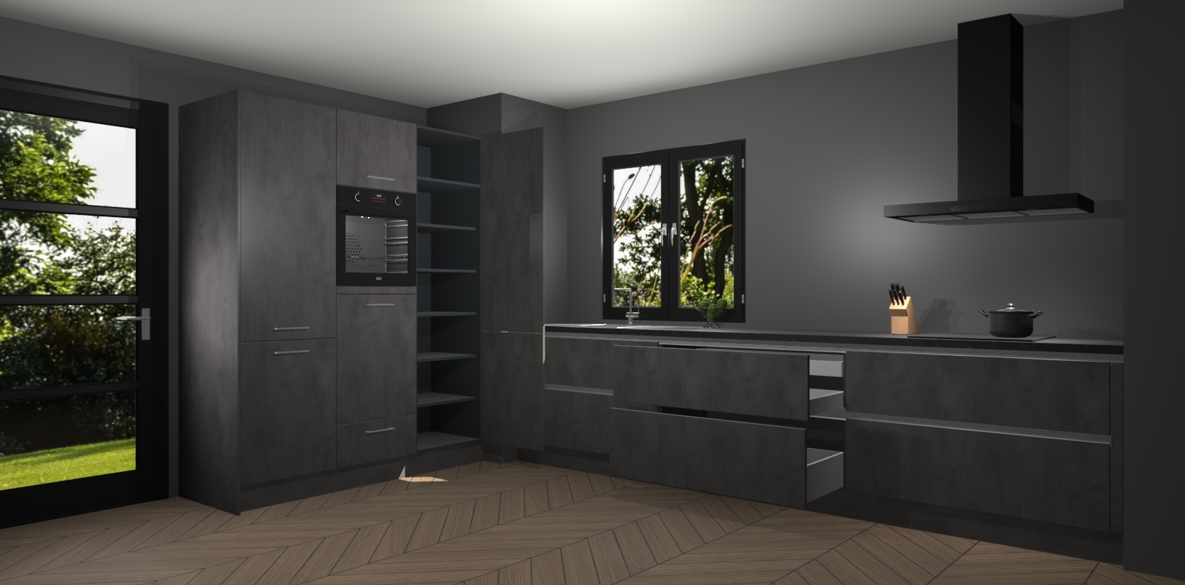 Maak van uw keuken een plek waar u trots op bent - trakteer uzelf vandaag nog op de kwaliteit en elegantie van de Beton Antraciet greeploze keuken Taipei !