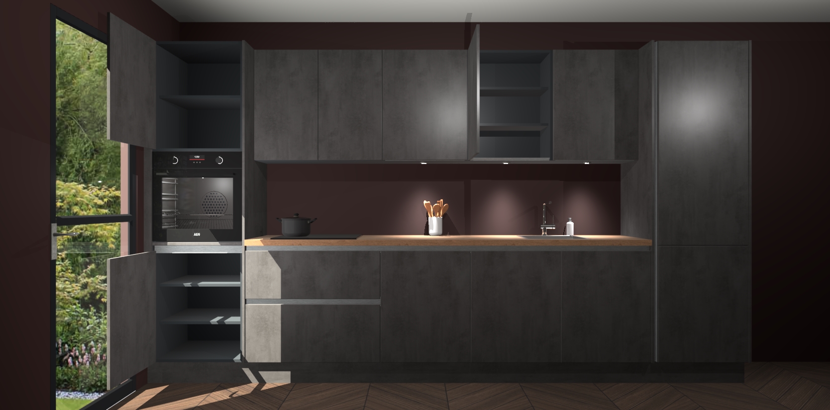 Dit is de perfecte keuken voor wie op zoek is naar een luxueuze stijl zonder zijn portemonnee te legen! Het chique ontwerp van de beton antraciet greeploze keuken Wels voegt dat vleugje verfijning toe aan elk huis. Het gemak van voorgemonteerde kasten bespaart u talloze uren tijd en energie, zodat u veel sneller dan verwacht kunt beginnen te genieten van uw prachtige nieuwe keuken. Bovendien bedraagt de levertijd slechts 7 weken.