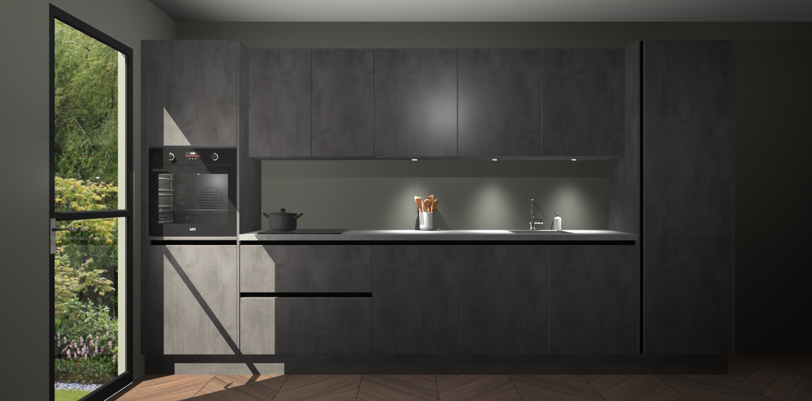 Dit is de perfecte keuken voor wie op zoek is naar een luxueuze stijl zonder zijn portemonnee te legen! Het chique ontwerp van de beton antraciet greeploze keuken Wels voegt dat vleugje verfijning toe aan elk huis. Het gemak van voorgemonteerde kasten bespaart u talloze uren tijd en energie, zodat u veel sneller dan verwacht kunt beginnen te genieten van uw prachtige nieuwe keuken. Bovendien bedraagt de levertijd slechts 7 weken.