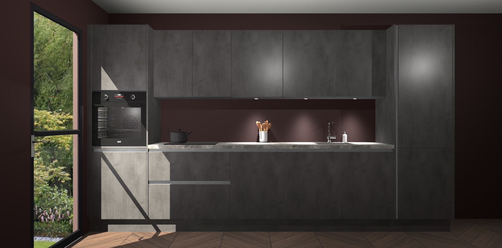 Dit is de perfecte keuken voor wie op zoek is naar een luxueuze stijl zonder zijn portemonnee te legen! Het chique ontwerp van de beton antraciet greeploze keuken Wels voegt dat vleugje verfijning toe aan elk huis. Het gemak van voorgemonteerde kasten bespaart u talloze uren tijd en energie, zodat u veel sneller dan verwacht kunt beginnen te genieten van uw prachtige nieuwe keuken. Bovendien bedraagt de levertijd slechts 7 weken.