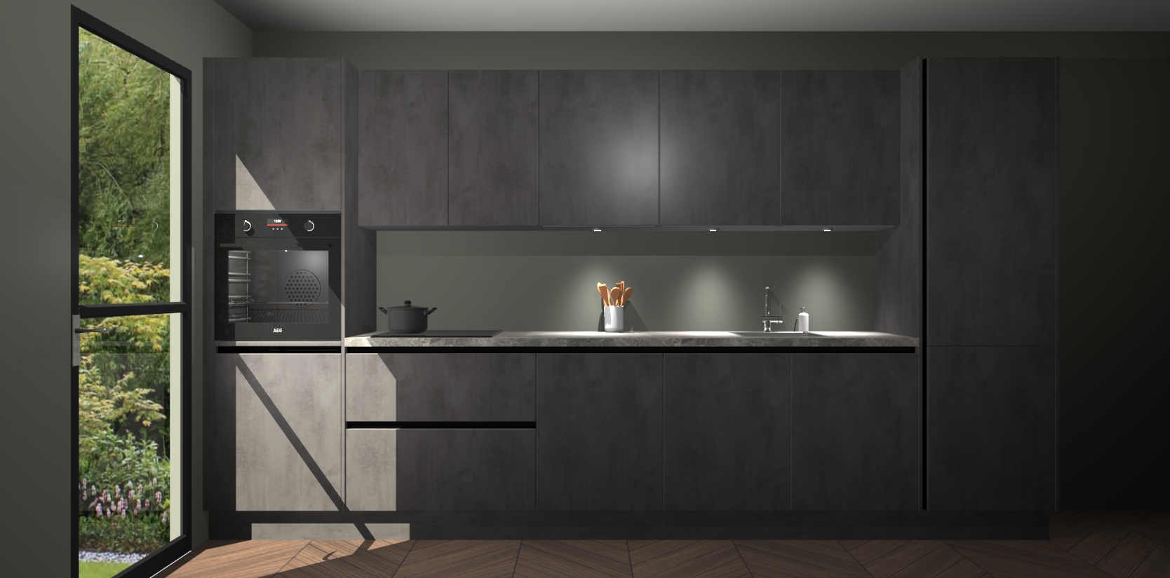 Dit is de perfecte keuken voor wie op zoek is naar een luxueuze stijl zonder zijn portemonnee te legen! Het chique ontwerp van de beton antraciet greeploze keuken Wels voegt dat vleugje verfijning toe aan elk huis. Het gemak van voorgemonteerde kasten bespaart u talloze uren tijd en energie, zodat u veel sneller dan verwacht kunt beginnen te genieten van uw prachtige nieuwe keuken. Bovendien bedraagt de levertijd slechts 7 weken.