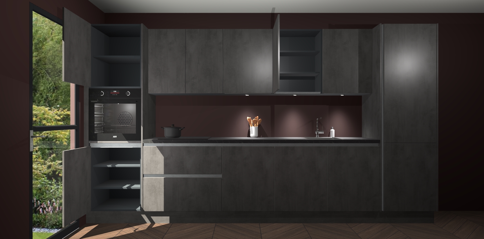 Dit is de perfecte keuken voor wie op zoek is naar een luxueuze stijl zonder zijn portemonnee te legen! Het chique ontwerp van de beton antraciet greeploze keuken Wels voegt dat vleugje verfijning toe aan elk huis. Het gemak van voorgemonteerde kasten bespaart u talloze uren tijd en energie, zodat u veel sneller dan verwacht kunt beginnen te genieten van uw prachtige nieuwe keuken. Bovendien bedraagt de levertijd slechts 7 weken.