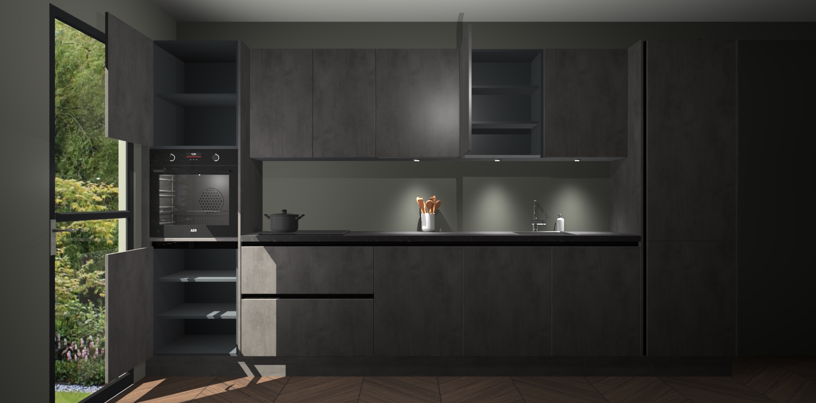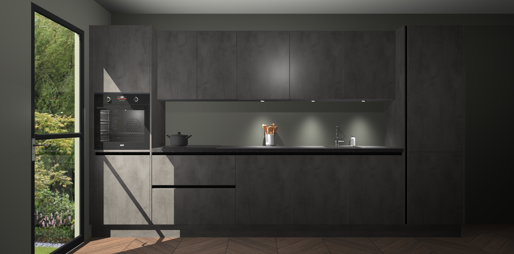 Dit is de perfecte keuken voor wie op zoek is naar een luxueuze stijl zonder zijn portemonnee te legen! Het chique ontwerp van de beton antraciet greeploze keuken Wels voegt dat vleugje verfijning toe aan elk huis. Het gemak van voorgemonteerde kasten bespaart u talloze uren tijd en energie, zodat u veel sneller dan verwacht kunt beginnen te genieten van uw prachtige nieuwe keuken. Bovendien bedraagt de levertijd slechts 7 weken.