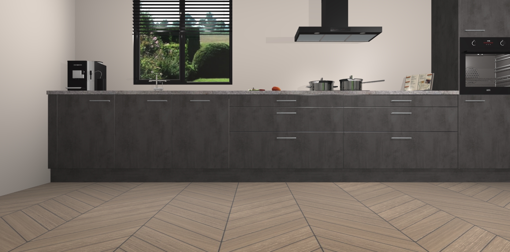 Dankzij de afwerking past de Beton Antraciet keuken Angola naadloos in elk huis of appartement. De soft-close deuren geven je extra gemoedsrust, want ze sluiten vanzelf en slaan nooit dicht! En alsof dat nog niet genoeg is, worden deze kasten volledig gemonteerd geleverd, dus maak je geen zorgen over eventuele installatieproblemen.