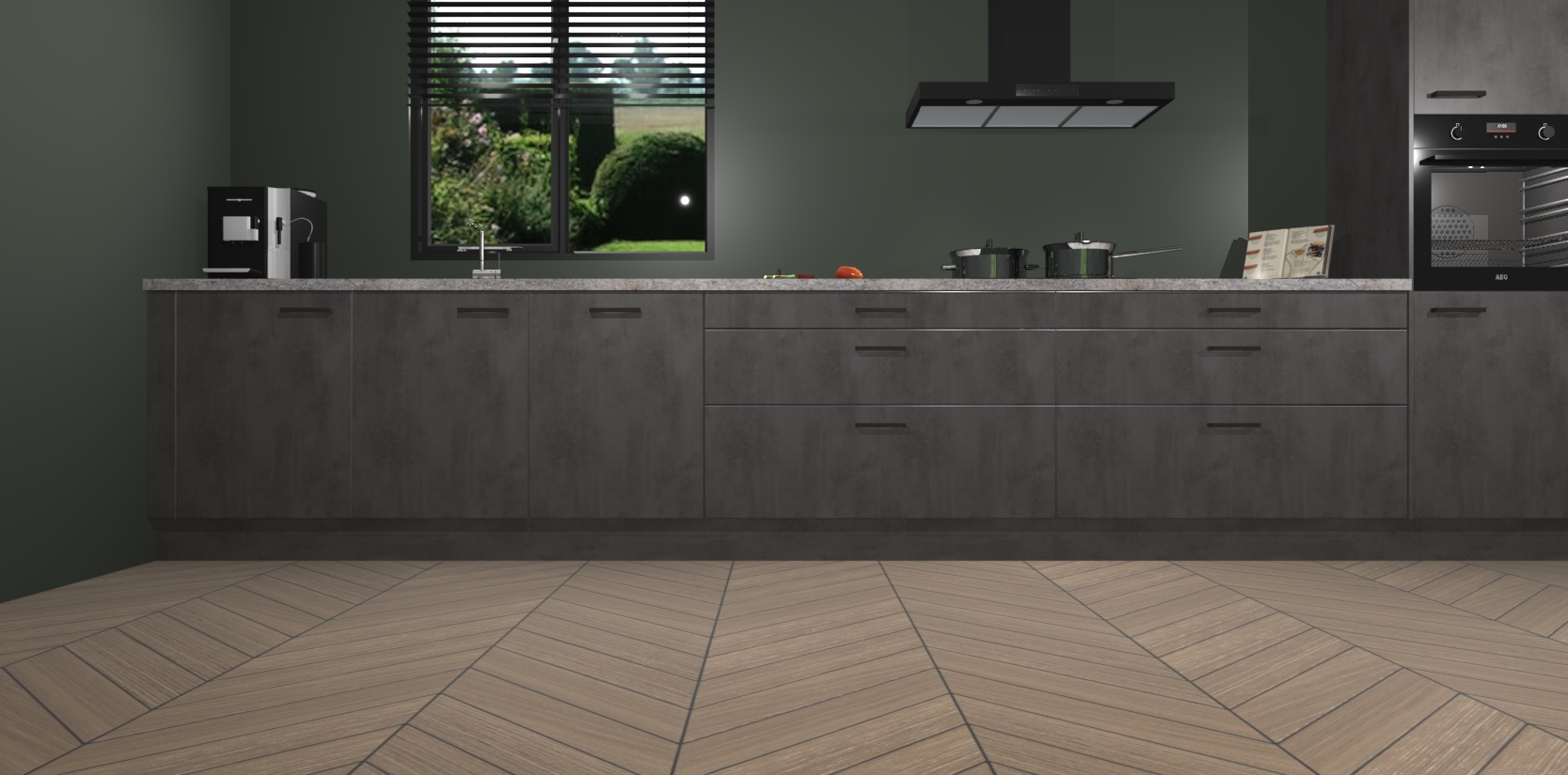 Dankzij de afwerking past de Beton Antraciet keuken Angola naadloos in elk huis of appartement. De soft-close deuren geven je extra gemoedsrust, want ze sluiten vanzelf en slaan nooit dicht! En alsof dat nog niet genoeg is, worden deze kasten volledig gemonteerd geleverd, dus maak je geen zorgen over eventuele installatieproblemen.