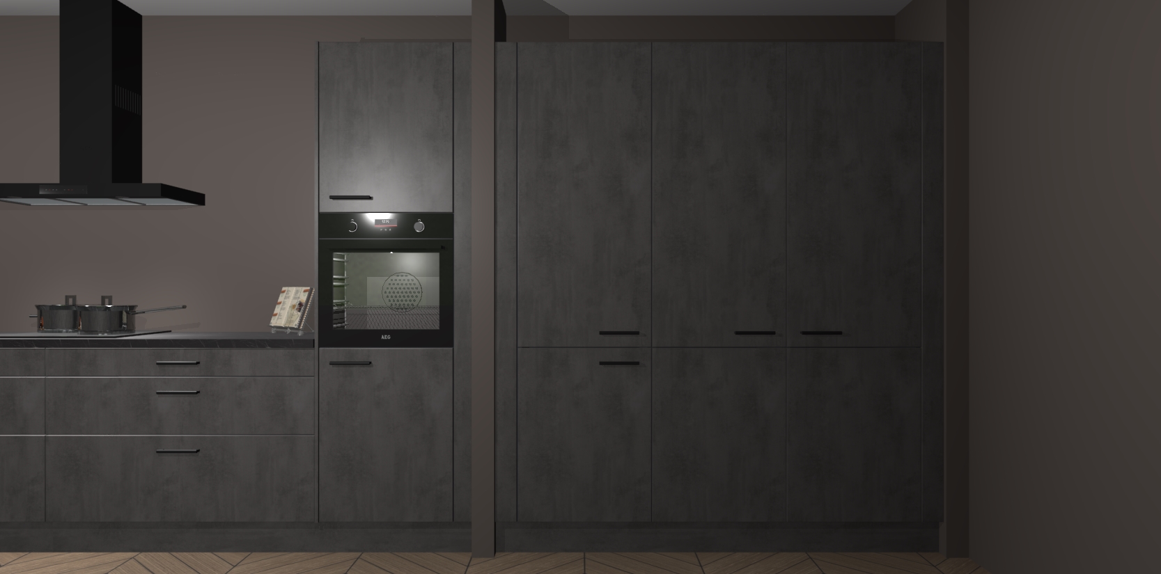 Dankzij de afwerking past de Beton Antraciet keuken Angola naadloos in elk huis of appartement. De soft-close deuren geven je extra gemoedsrust, want ze sluiten vanzelf en slaan nooit dicht! En alsof dat nog niet genoeg is, worden deze kasten volledig gemonteerd geleverd, dus maak je geen zorgen over eventuele installatieproblemen.