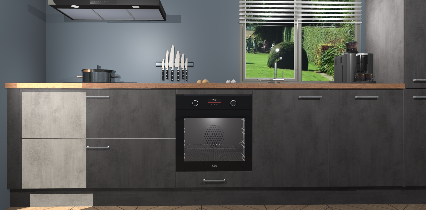 Maak kennis met de nieuwe Beton Antraciet keuken Antigua - een verbluffend, hoogwaardig keukenontwerp die uw ruimte gegarandeerd omtovert tot iets buitengewoons! Met zijn eigentijdse kastdeuren met luxueuze softclose systeem is de Beton Antraciet keuken Antigua de perfecte keuze voor iedereen die de look en feel van zijn leefruimte wil opwaarderen.