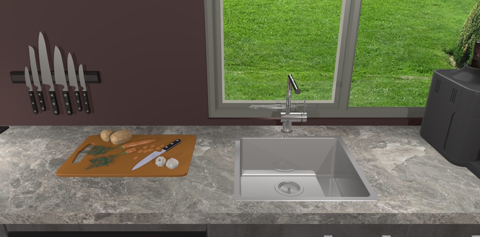 - De spoelbak is nog niet in gevreesd. Dit dient tijdens het werk gedaan te worden