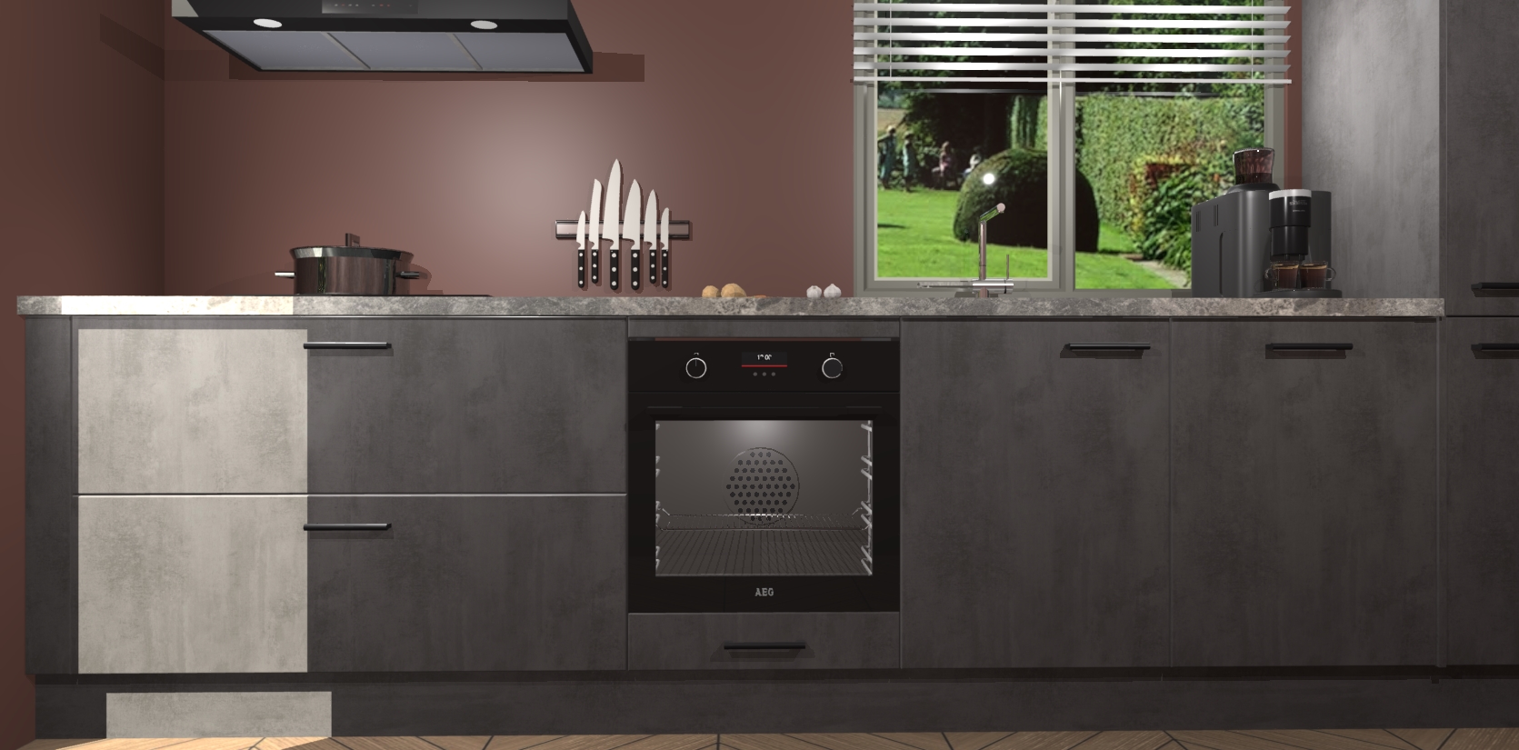 Maak kennis met de nieuwe Beton Antraciet keuken Antigua - een verbluffend, hoogwaardig keukenontwerp die uw ruimte gegarandeerd omtovert tot iets buitengewoons! Met zijn eigentijdse kastdeuren met luxueuze softclose systeem is de Beton Antraciet keuken Antigua de perfecte keuze voor iedereen die de look en feel van zijn leefruimte wil opwaarderen.