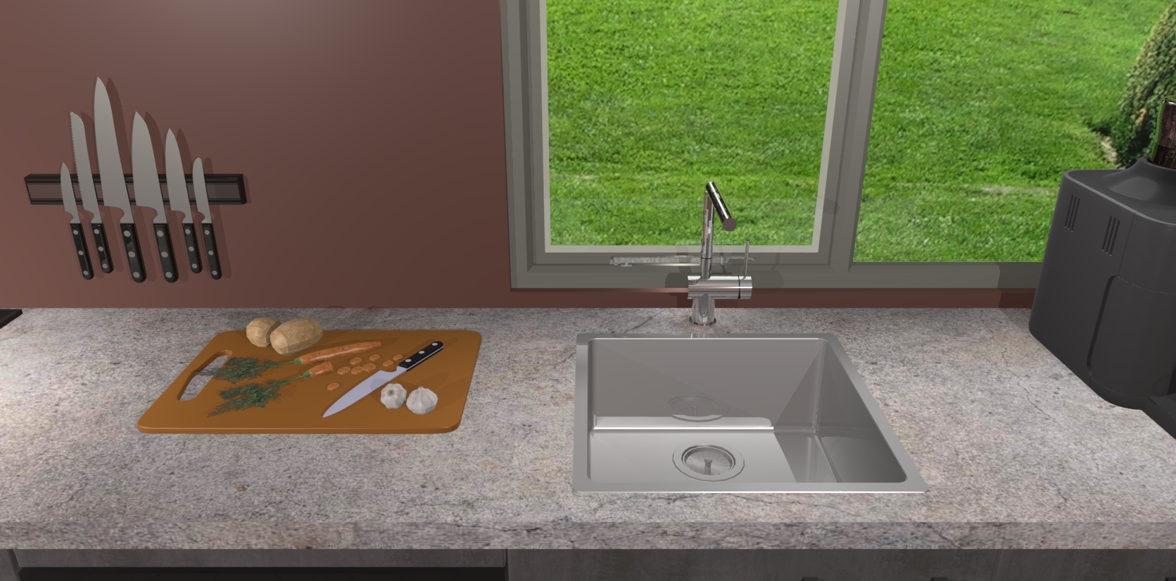 - De spoelbak is nog niet in gevreesd. Dit dient tijdens het werk gedaan te worden