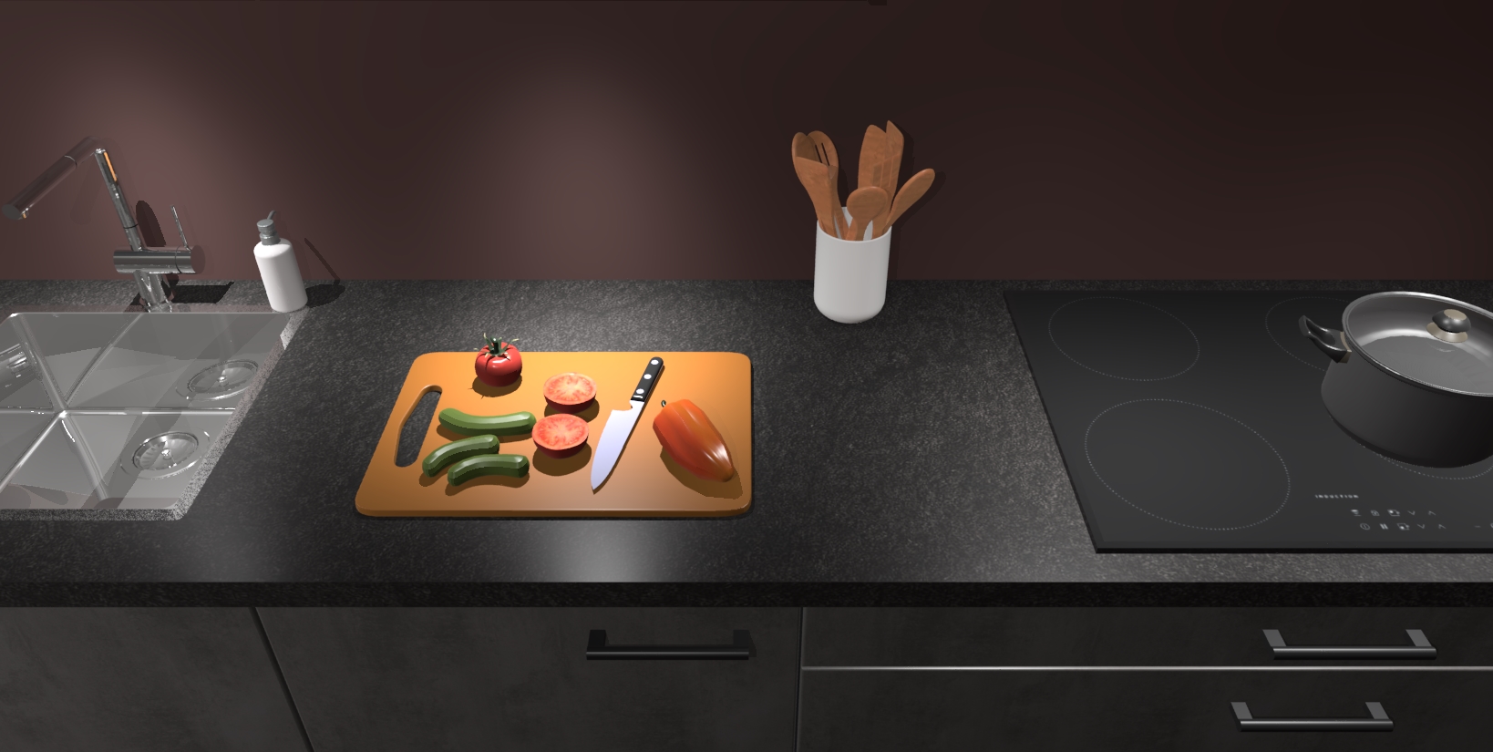 - Uitsparing van kookplaat, spoelbak en kraan dient u zelf te verzorgen.