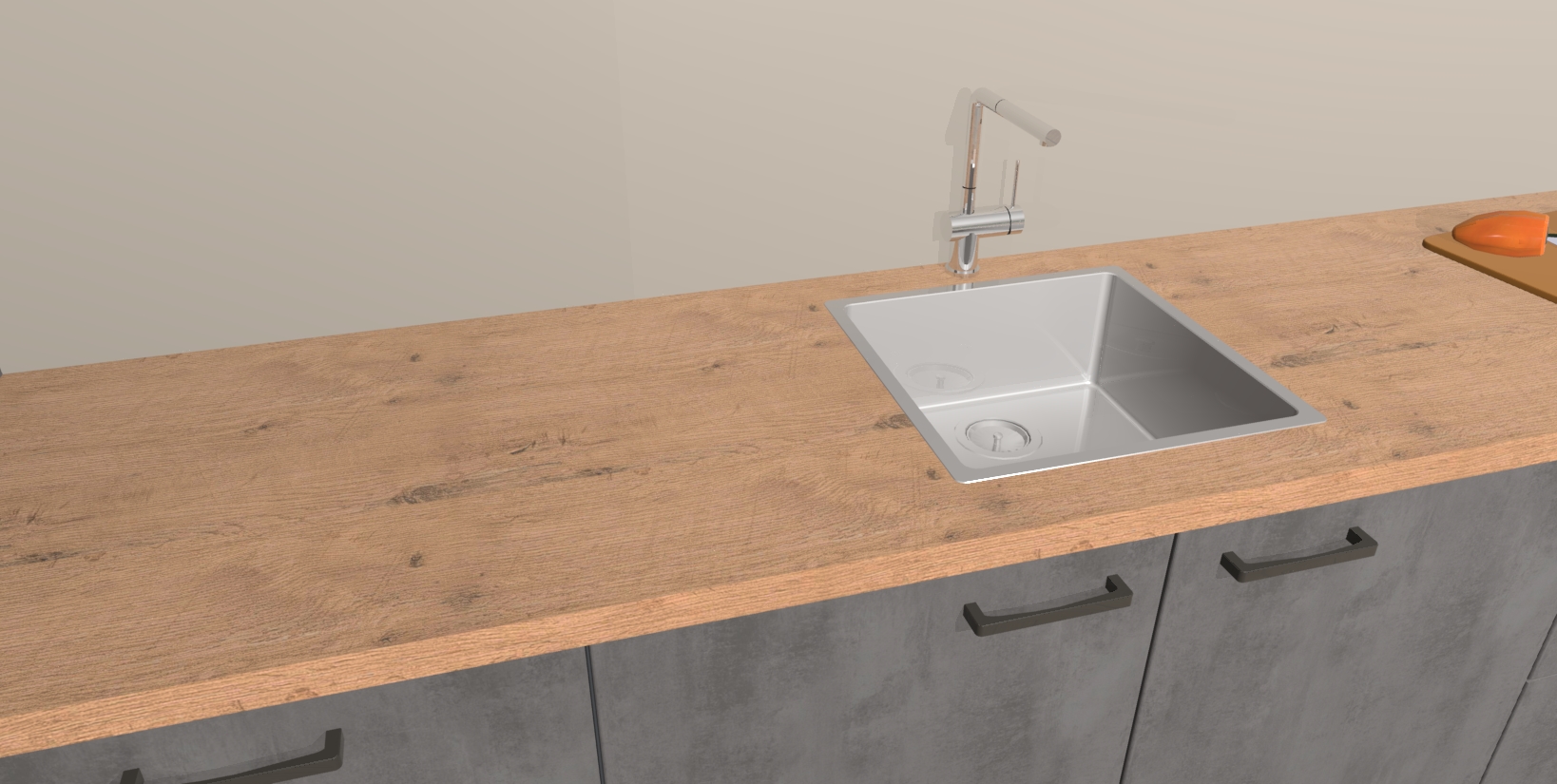 - De spoelbak is nog niet in gevreesd. Dit dient tijdens het werk gedaan te worden