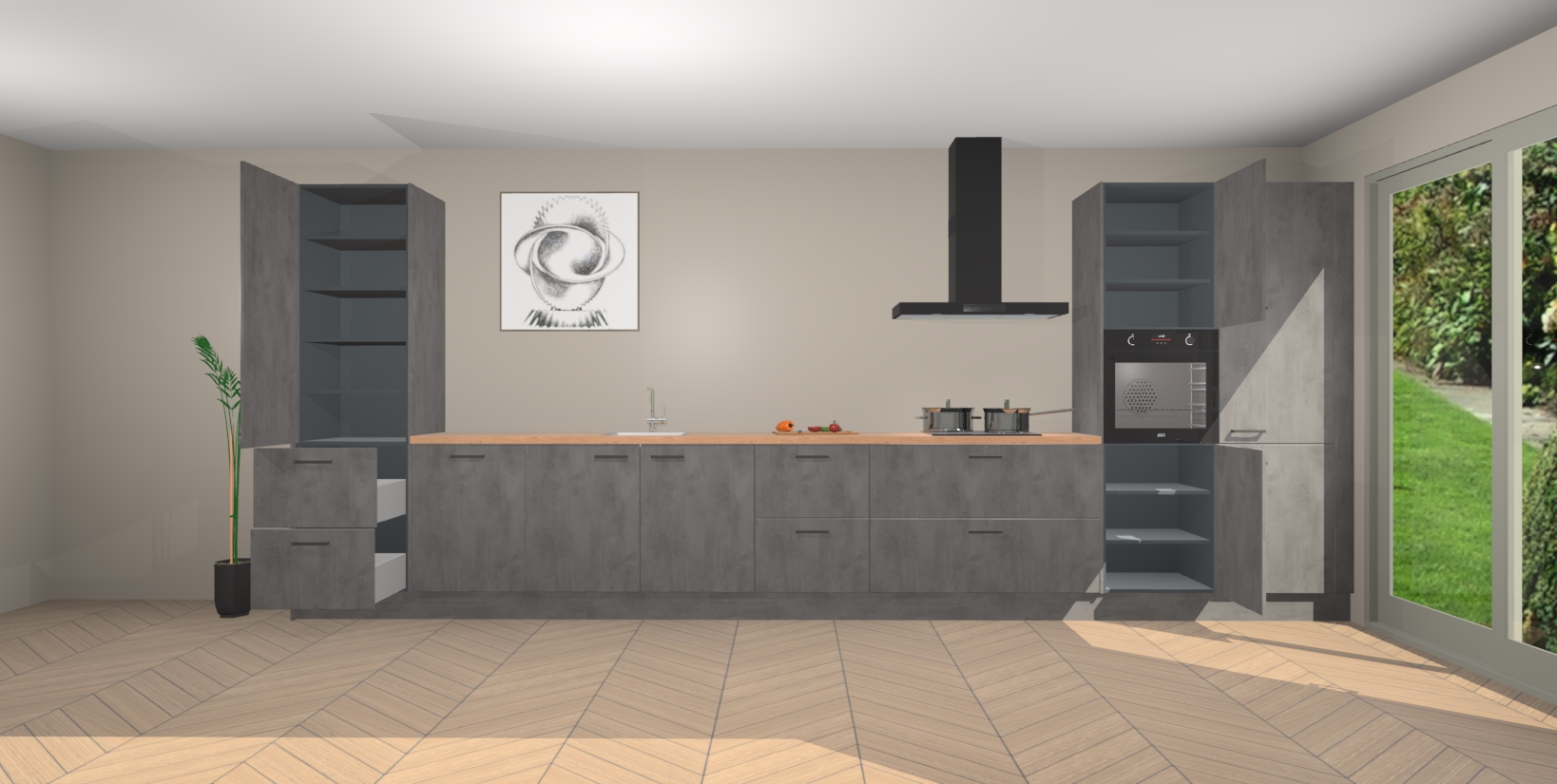 Inclusief plinten, stelpoten en werkblad