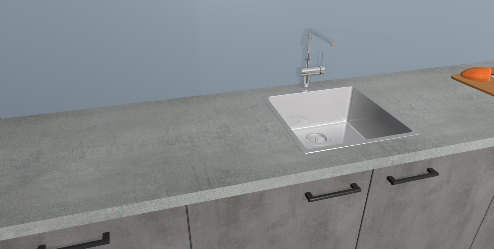 - De spoelbak is nog niet in gevreesd. Dit dient tijdens het werk gedaan te worden
