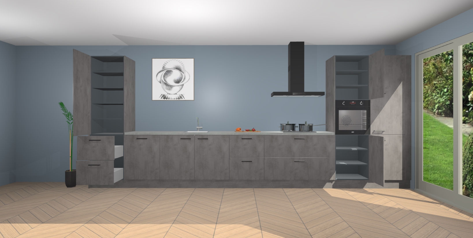Inclusief plinten, stelpoten en werkblad