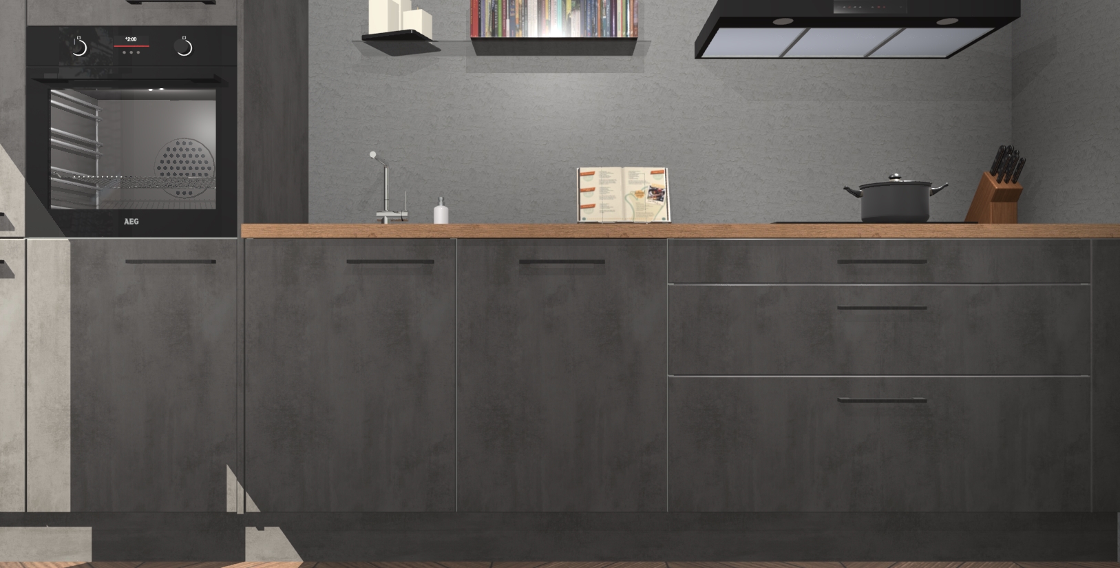 Inclusief plinten, stelpoten en werkblad