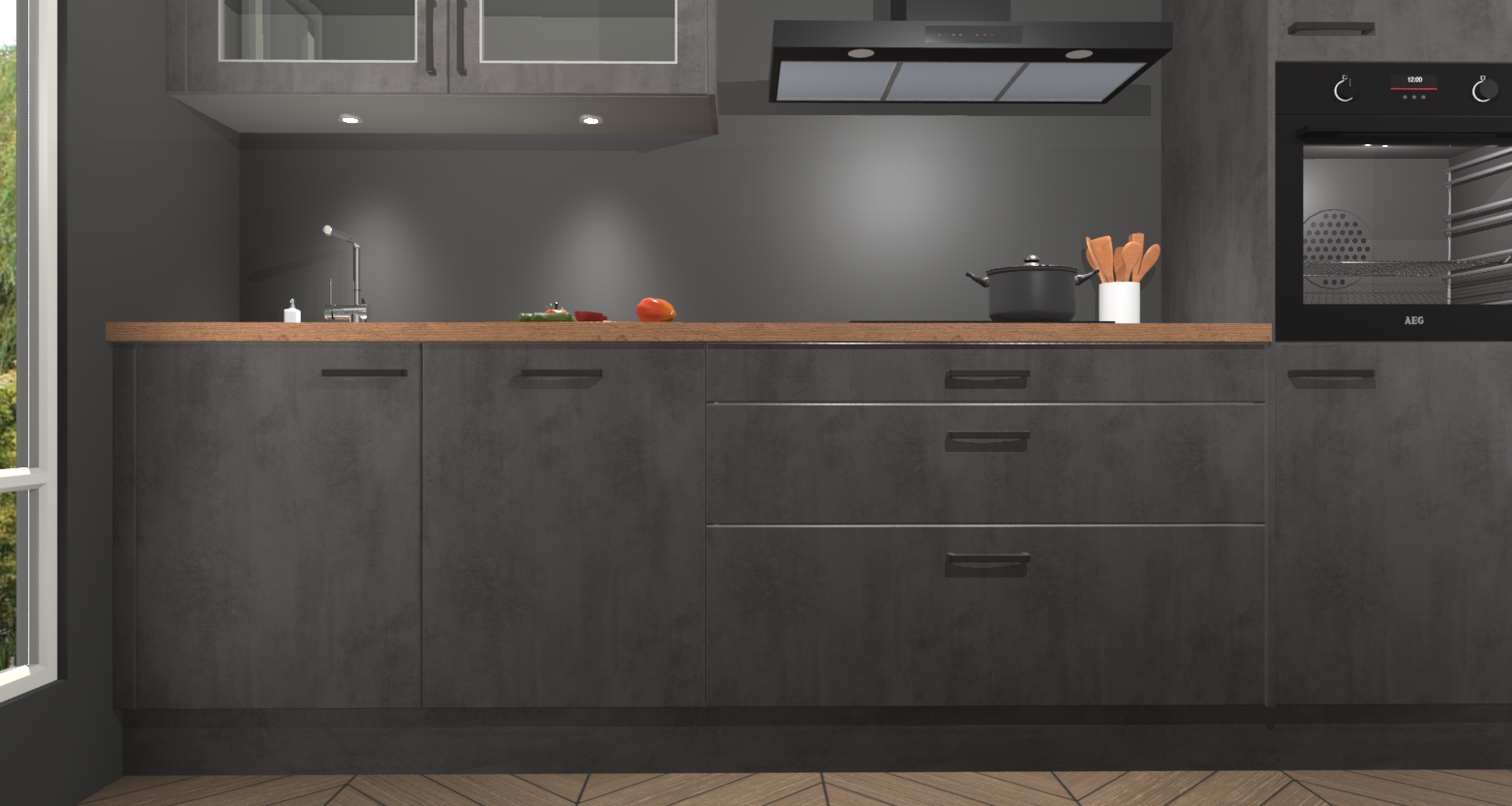 Inclusief plinten, stelpoten en werkblad