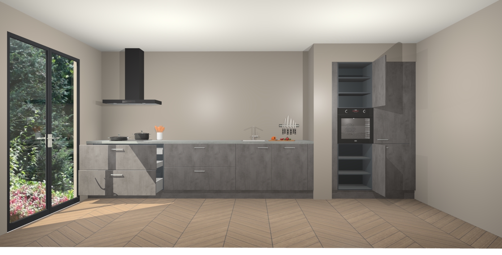 Met de Beton Antraciet keuken Calgary Maakt u van uw keuken het pronkstuk van uw huis. Stijlvol en toch praktisch, de nieuwste look voor wie meer waarde en charme aan zijn huis wil toevoegen. Met prachtige handgrepen die zich lenen voor een klassieke stijlbron, zal u niet teleurgesteld zijn in het resultaat. De soft-close deurscharnieren geven een gevoel van luxe omdat ze zachtjes bewegen zonder storende of krakende geluiden te veroorzaken.
