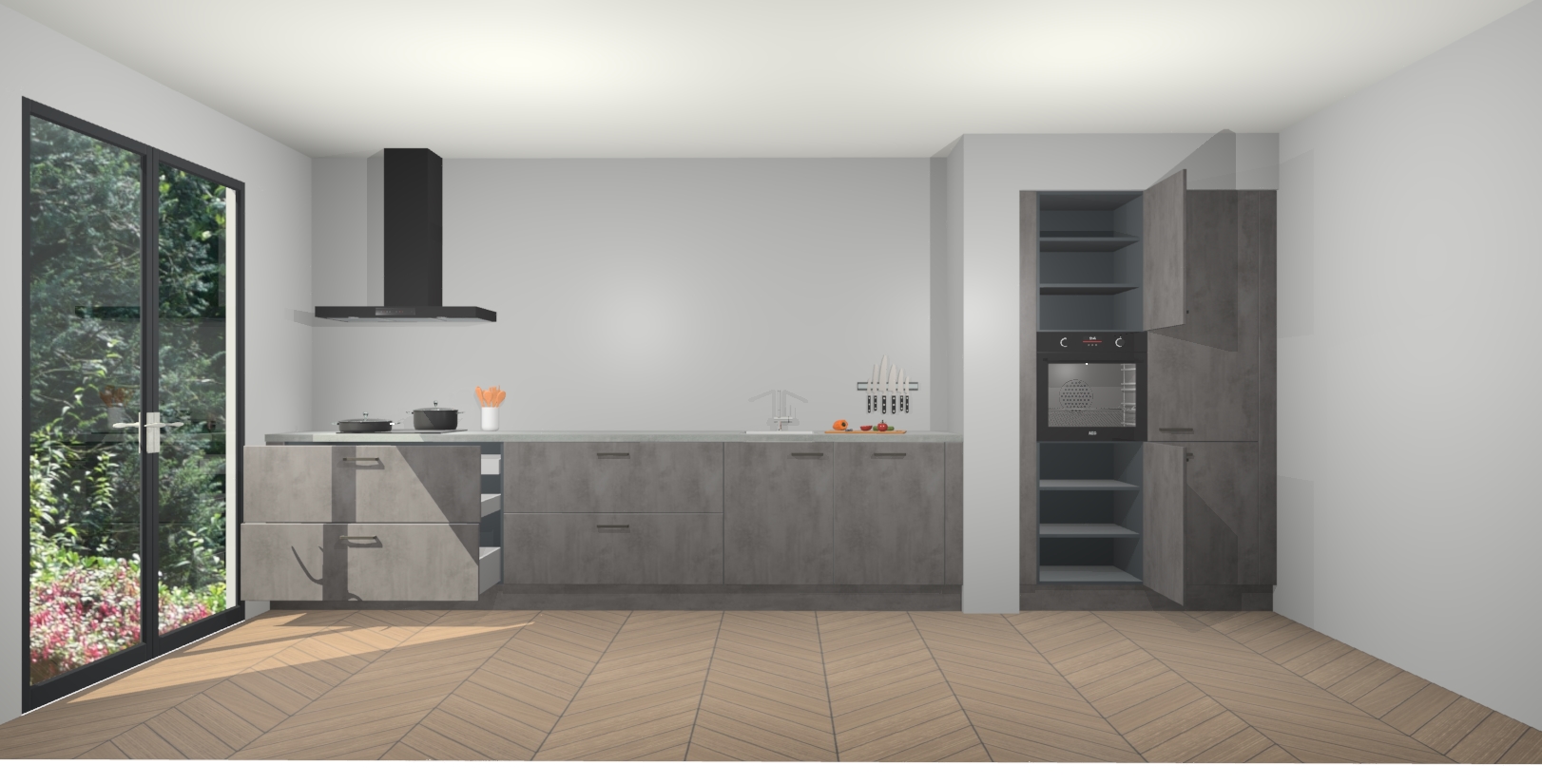 Met de Beton Antraciet keuken Calgary Maakt u van uw keuken het pronkstuk van uw huis. Stijlvol en toch praktisch, de nieuwste look voor wie meer waarde en charme aan zijn huis wil toevoegen. Met prachtige handgrepen die zich lenen voor een klassieke stijlbron, zal u niet teleurgesteld zijn in het resultaat. De soft-close deurscharnieren geven een gevoel van luxe omdat ze zachtjes bewegen zonder storende of krakende geluiden te veroorzaken.