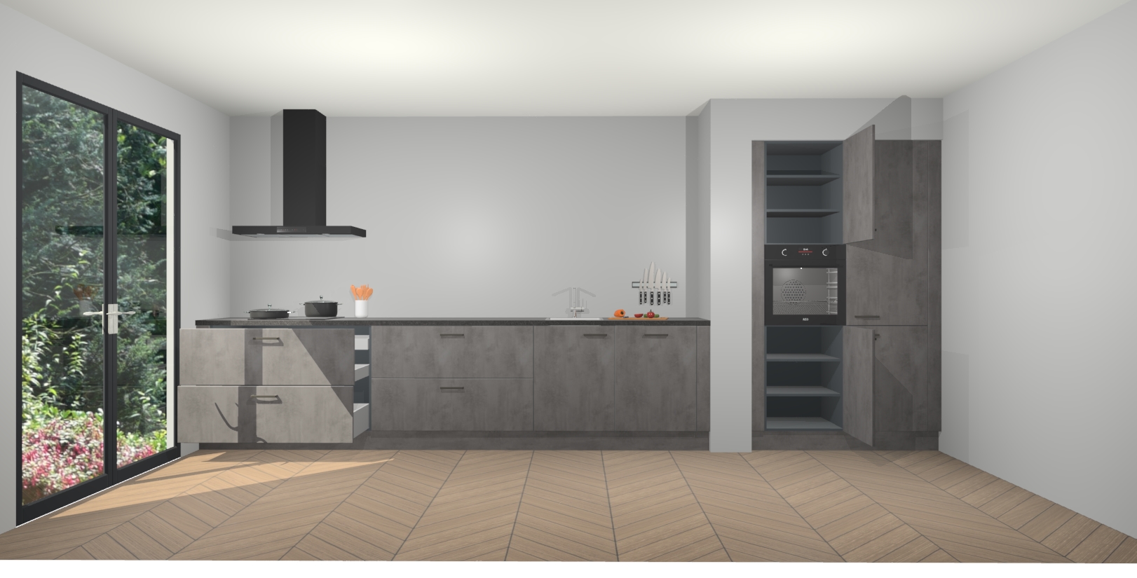 Met de Beton Antraciet keuken Calgary Maakt u van uw keuken het pronkstuk van uw huis. Stijlvol en toch praktisch, de nieuwste look voor wie meer waarde en charme aan zijn huis wil toevoegen. Met prachtige handgrepen die zich lenen voor een klassieke stijlbron, zal u niet teleurgesteld zijn in het resultaat. De soft-close deurscharnieren geven een gevoel van luxe omdat ze zachtjes bewegen zonder storende of krakende geluiden te veroorzaken.