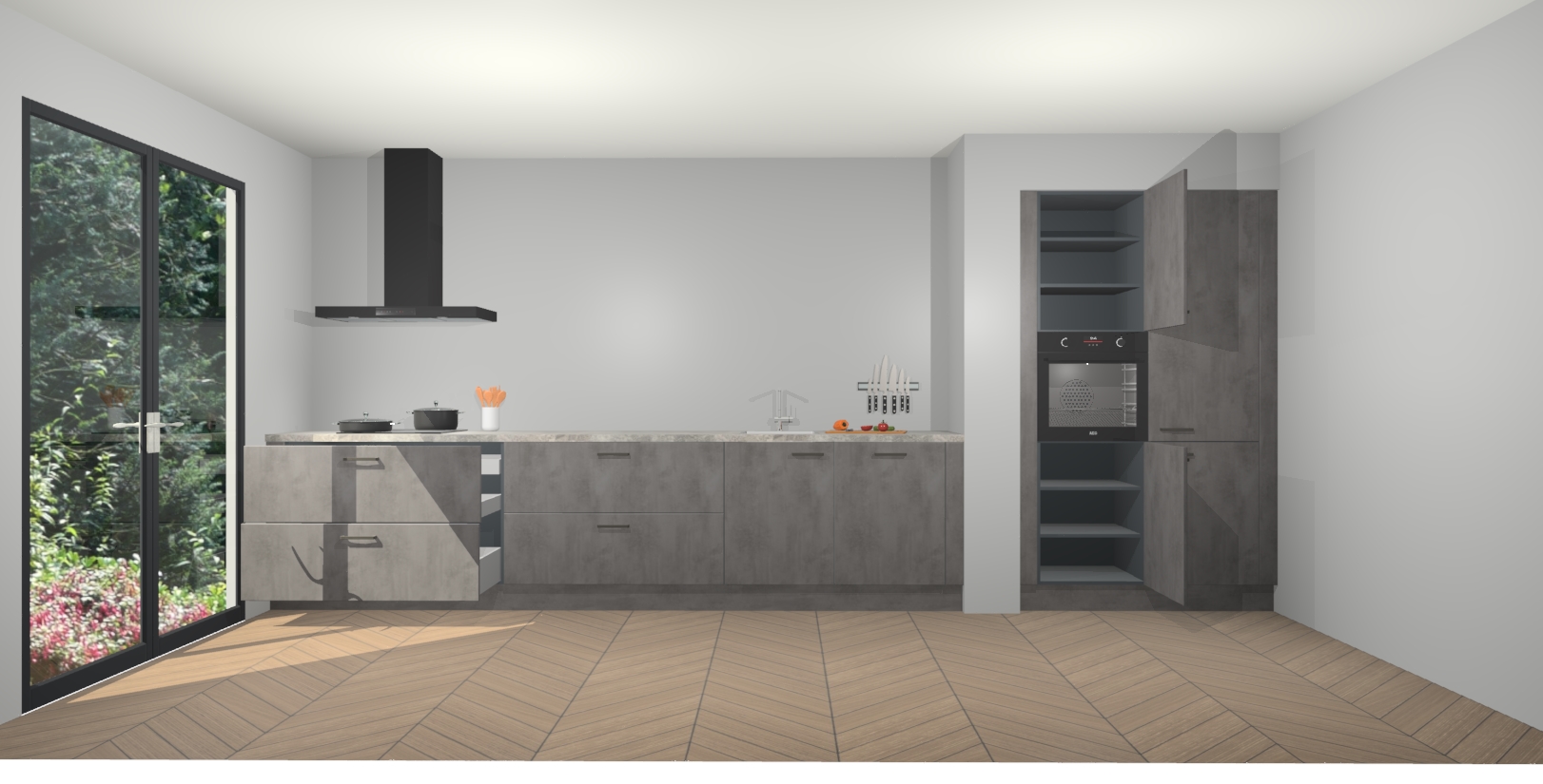 Met de Beton Antraciet keuken Calgary Maakt u van uw keuken het pronkstuk van uw huis. Stijlvol en toch praktisch, de nieuwste look voor wie meer waarde en charme aan zijn huis wil toevoegen. Met prachtige handgrepen die zich lenen voor een klassieke stijlbron, zal u niet teleurgesteld zijn in het resultaat. De soft-close deurscharnieren geven een gevoel van luxe omdat ze zachtjes bewegen zonder storende of krakende geluiden te veroorzaken.