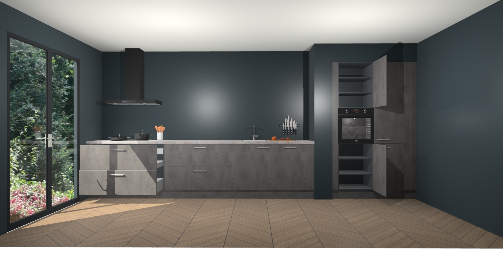 Maak kennis met de Beton Antraciet keuken Calgary - de perfecte aanvulling voor uw moderne keuken! Ervaar tijdloos design, elegantie en een chique uitstraling met onze handgrepen, soft-close deuren en veel opbergruimte. Dit alles wordt aangeboden tegen een vaste lage prijs voor ongeëvenaarde Duitse keukenkwaliteit!